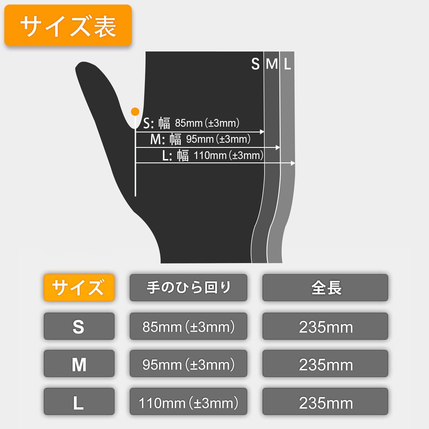 【安心・安全】食品衛生法に適合しているため料理用に最適なニトリル手袋。違うサイズのオプション,S、M、Lの3サイズから選べます(長さ23cm、厚さ0.07mmで、)。