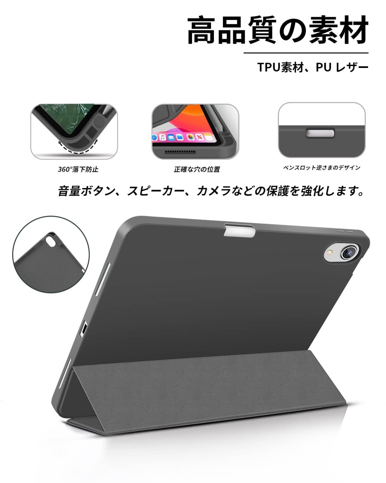 特徴: iPad Air 第5/4世代対応、Pencil Proペン収納、オートスリープ/ウェイク機能付き