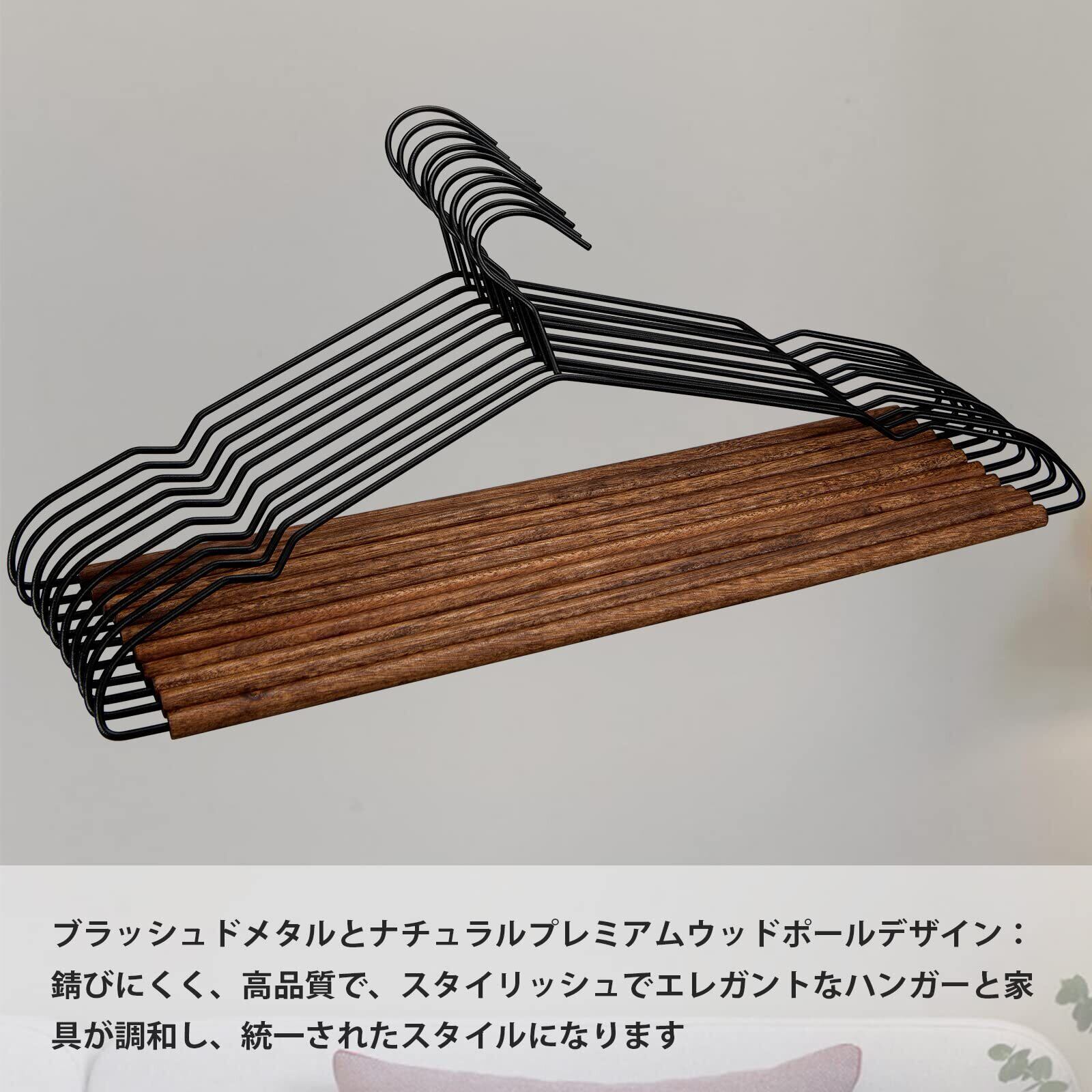 【高級なハンガー】高品質の木材と金属製、高品質で、スタイリッシュでエレガントなハンガーと家具が調和し、統一されたスタイルになります。注意深い紙やすりで磨き、環境に優しく、耐摩耗性のあるニスコーティングを施した後、ハンガーの表面にバリがなくなります。