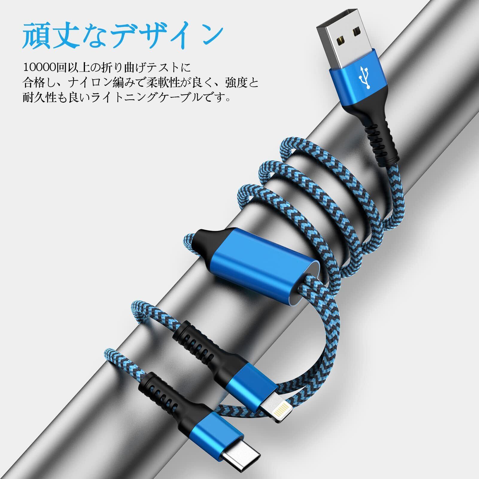 【頑丈な構造】2本セット 充電コード 2in1は優質ナイロン編み、一般的なケーブルより10倍以上の耐久性をもち、10000回以上の厳しい折り曲げテストもクリアしました。断線防止のため、アルミ合金製接続口を採用し、高耐久性で抜挿寿命性向上、安心して充電することができます。