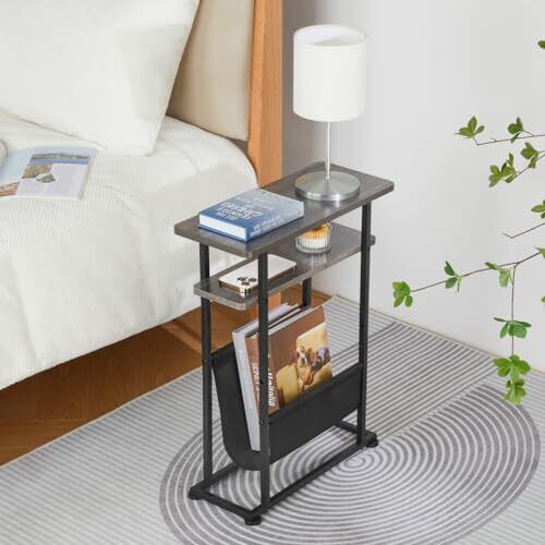 ZEXVIDA サイドテーブル スリム 布袋付き ベッドサイドテーブル 幅42.2×奥行18×高さ55cm ナイトテーブル ベッド横 ミニテーブル コーヒーテーブル リビングサイドテーブル 多機能 木目調 簡易テーブル 小型テーブル テーブル サイドラック 雑誌テーブル ビンテージ (グレー) | yankees