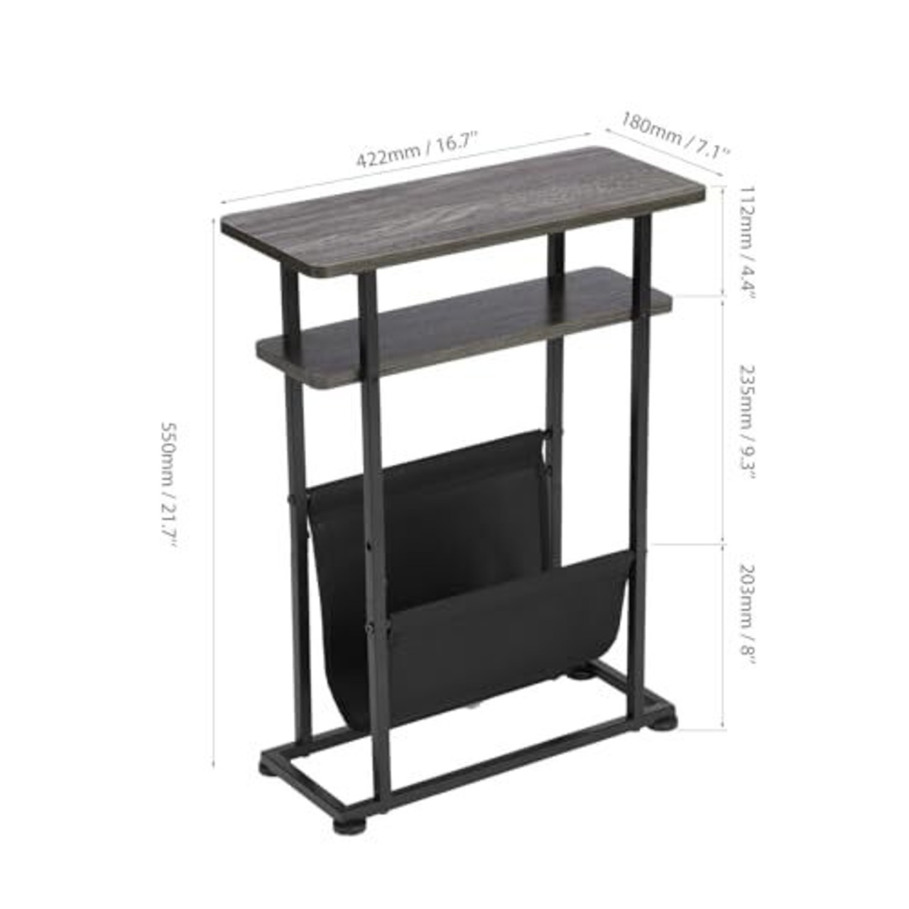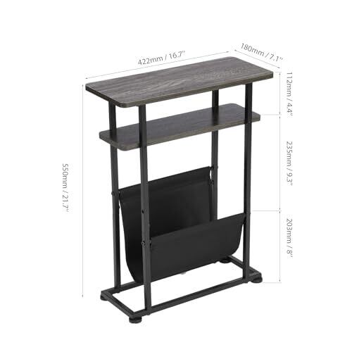【空間利用の美学】上層の天板は42.2*18cmであり、場所を取らない、コーヒーを置くのにとても便利なサイドテーブルです。また下層の物置板も空間あり、しかも丈夫な布袋付き、雑誌、ハンディブック、新聞などいくつかの大きい物を収納することができます。上下二階に分けて混んでいないので、物を収納するのに十分です。