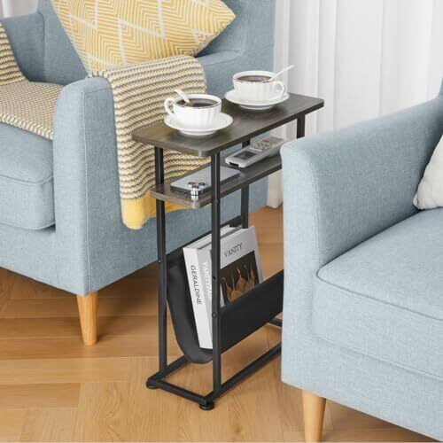 ZEXVIDA サイドテーブル スリム 布袋付き ベッドサイドテーブル 幅42.2×奥行18×高さ55cm ナイトテーブル ベッド横 ミニテーブル コーヒーテーブル リビングサイドテーブル 多機能 木目調 簡易テーブル 小型テーブル テーブル サイドラック 雑誌テーブル ビンテージ (グレー)