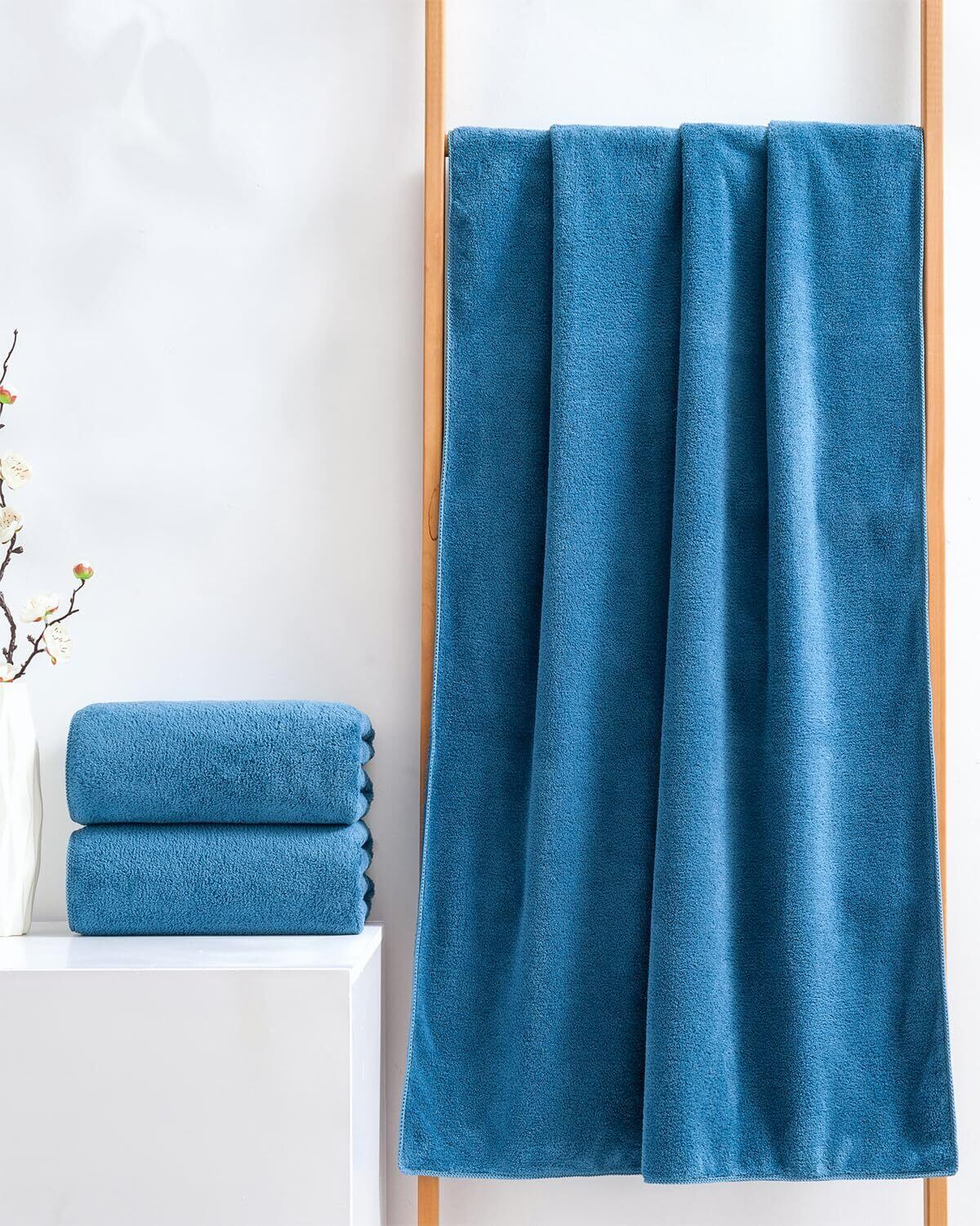 Lumimi バスタオル マイクロファイバー 大判 【2枚セット スモーキーブルー 70*140cm】吸水速乾 ふわふわ ホテルスタイルタオル 瞬間吸水 部屋干し お風呂上がり耐久性 バス用品 | yankees