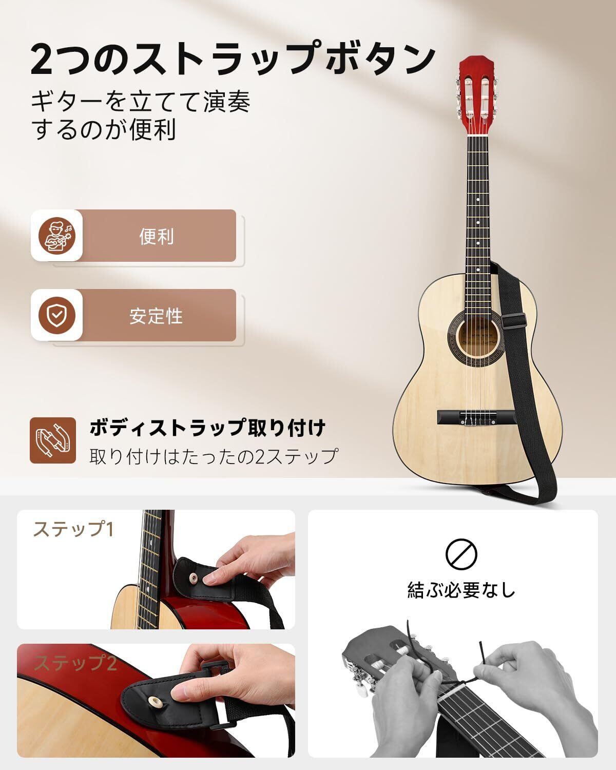 Moukey アコースティックギター 初心者セット 36インチ 上質な木材 入門練習 子供 学生 ギター コードポスター 、チューナー、ケース付き ナチュラル