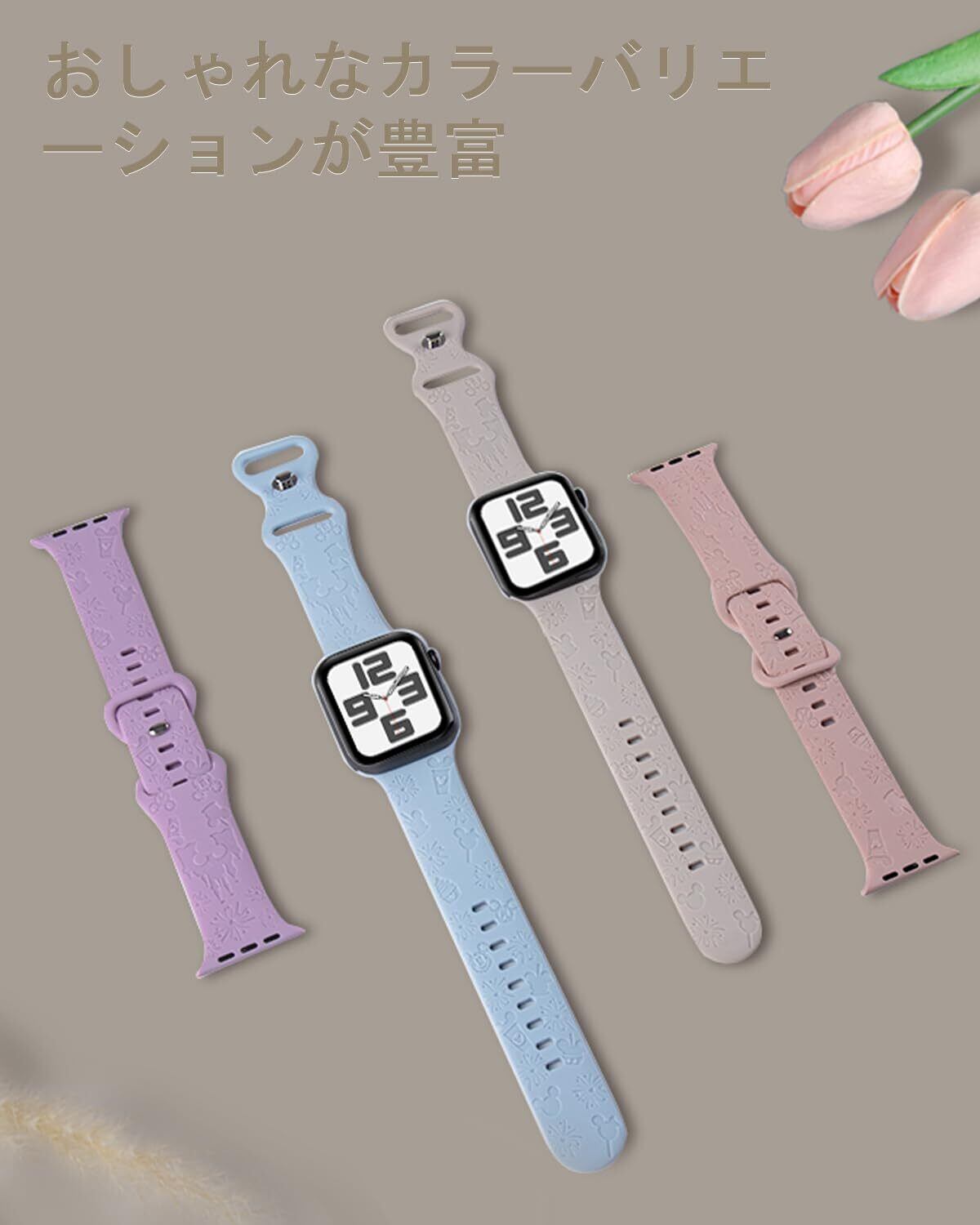 【高品質シリコン素材】iWatch 42mm 44mm 45mm 49mm キャラクターバンドは肌に優しい高品質ソフトシリコン素材を採用することで、普通のバンドより更に柔らかく、軽く、安全に着用できます。折り曲げたり、ねじれても元に戻る優れた伸縮性が特徴で、装着も非常に便利です。シリコン素材で装着感が楽で見た目も彫りがあるのでおしゃれです。適切な手首のサイズ:150mm~210mm*ご注意:手動測定のために、2~5mmの誤差がある場合があります。