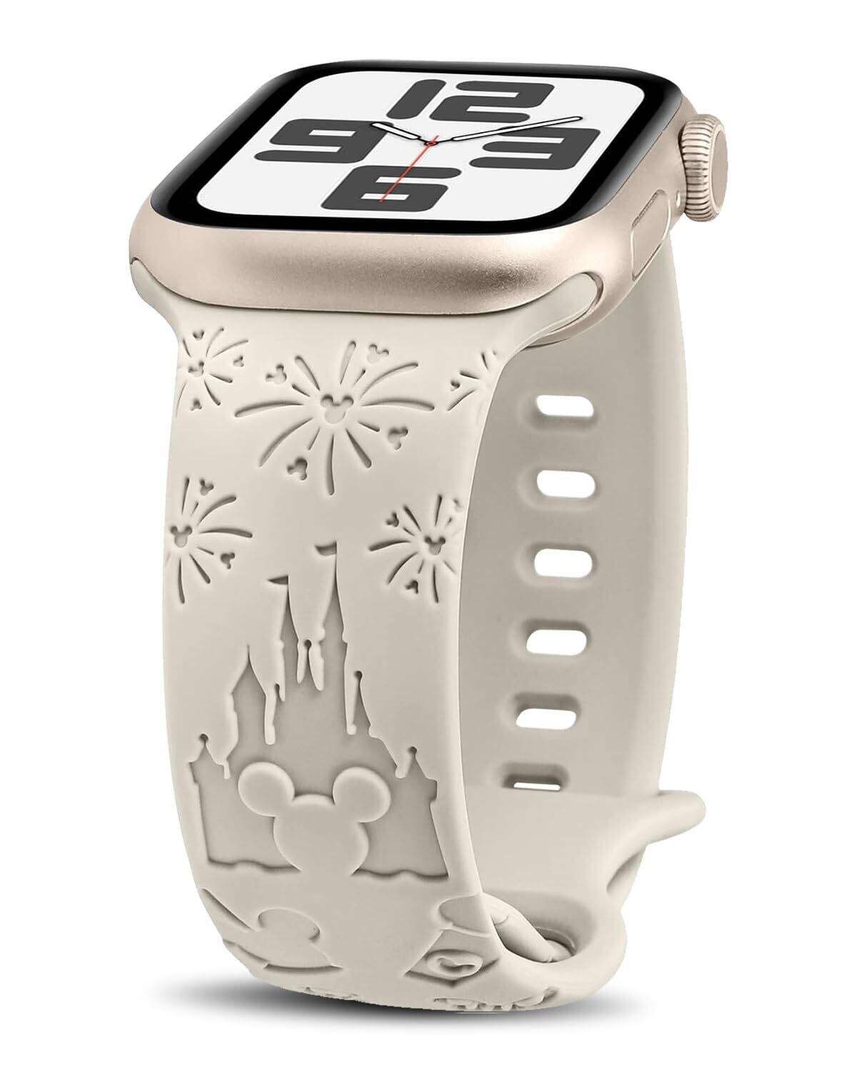 【かわいいスタイル】特別に設計されている可愛い iWatch Series 10 46mm キャラクターバンド。世界中の人に愛されるキュートな要素を取り入れたデザイン、キャッスル、花火、アイスクリーム のカートゥーンスタイルの絵が描かれています。