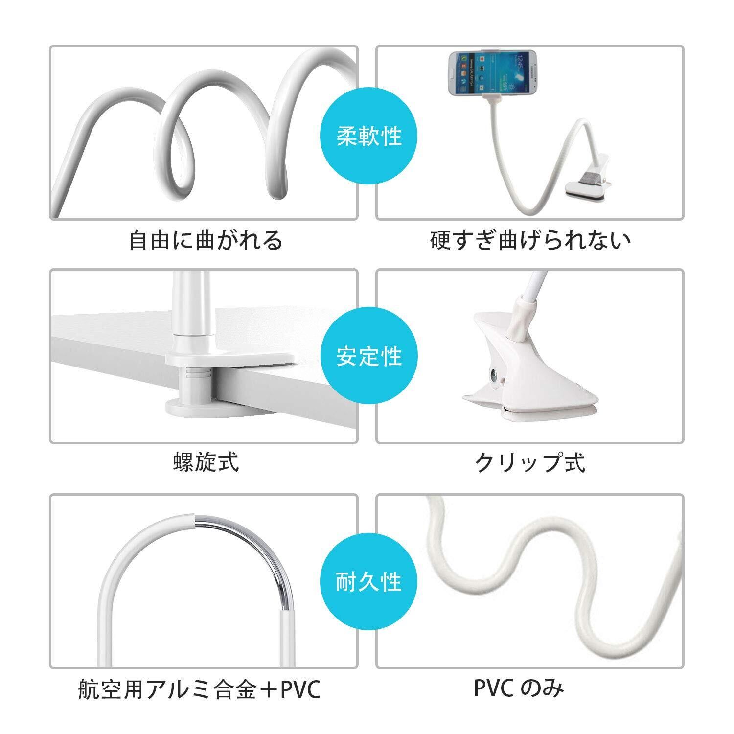 スマホスタンド フレキシブルアームスマホスタンド スマホアームスタンド 寝ながらベット用スマホホルフレキシブルアーム 360°角度調整可能 ベットスタンド クランプ式 アームスタンド 螺旋式 土台強化 滑り止め(3.5-10インチ)に対応 ホワイト | yankees