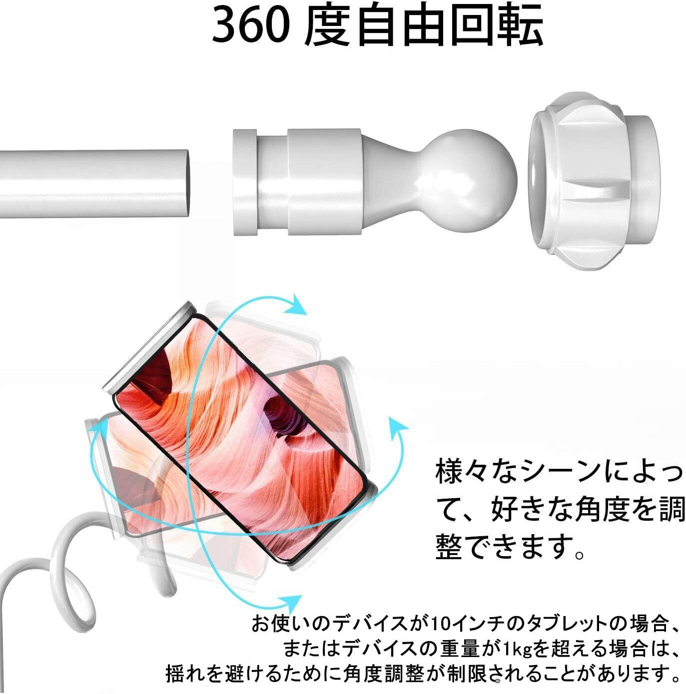 スマホスタンド フレキシブルアームスマホスタンド スマホアームスタンド 寝ながらベット用スマホホルダー フレキシブルアーム 360°角度調整可能 ベットスタンド クランプ式 アームスタンド 螺旋式 土台強化 滑り止め(3.5-10インチ)に対応 ホワイト