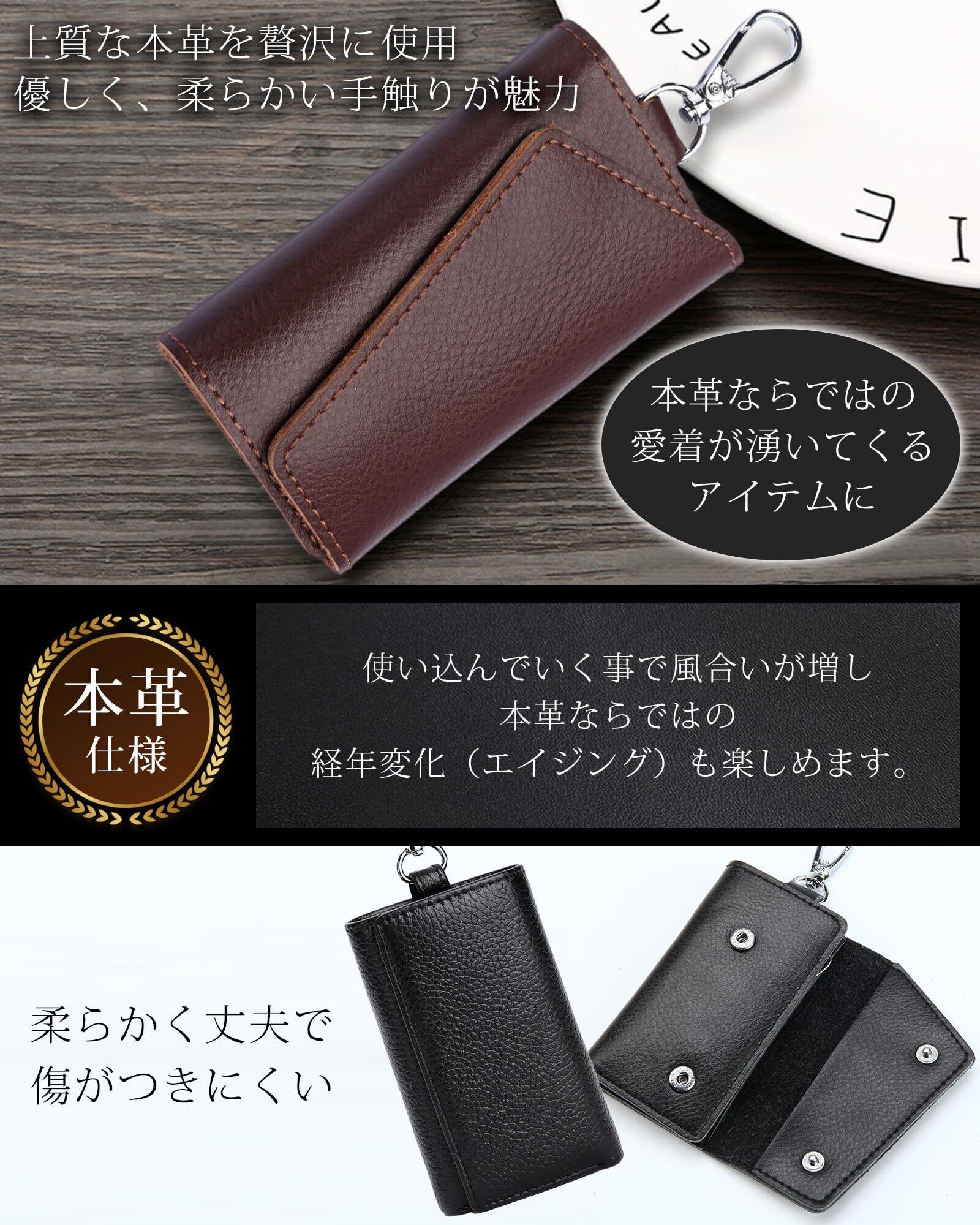 キーケース メンズ 本革 6連 カードキーケース 鍵ケース 車 スマートキー対応 大容量 (ダークブラウン)