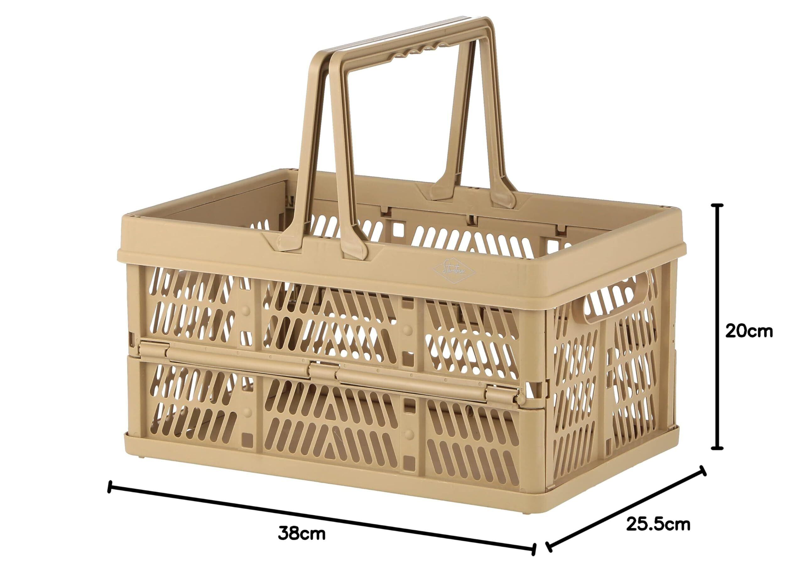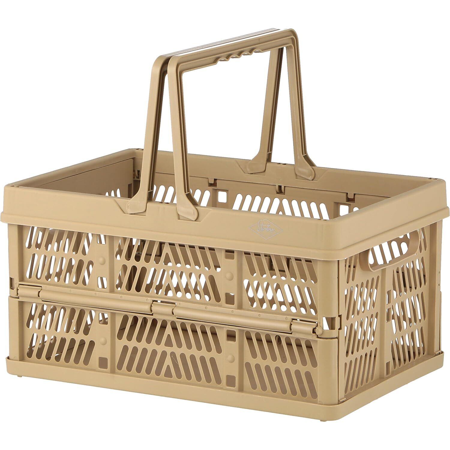 不二貿易 折りたたみ コンテナ かご 幅38×奥行25.5×高さ20㎝ ベージュ 取っ手付き 持ち運び簡単 内容量15L Mサイズ 69005