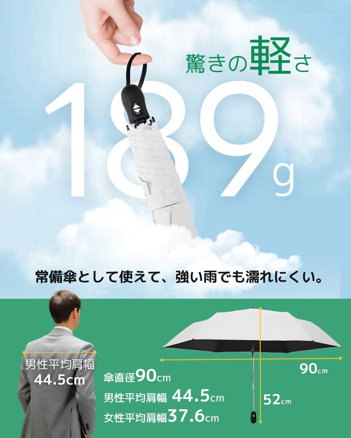 【軽量*携帯便利】 折りたたみ日傘フラットなデザインで、バッグに簡単に入れることができます。折りたたんだ厚さはわずか4cm、長さは25.5cm、重さは約199gです。超コンパクトボディ 使用?携帯に便利!全天候対応でき、雨の日も雪の日も晴天も使えます。男女兼用ワンタッチ 自動開閉折り畳み傘。通学、通勤、遠足、旅行,出張などの場合がご利用できます。