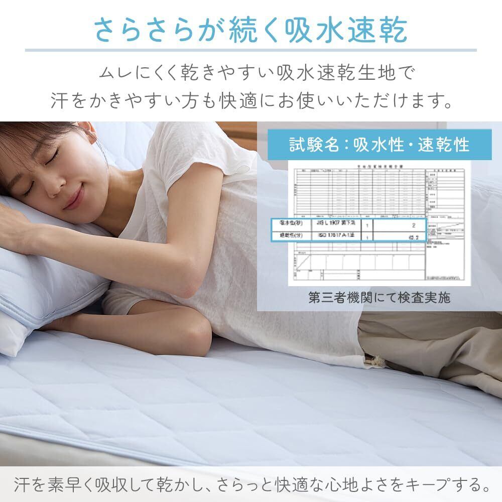 「アイリスプラザ 夏用 冷感敷きパッド」をぜひご覧ください!この商品は、ひんやりとした冷感と快適な寝心地を実現するためにデザインされた、吸水リバーシブル仕様の敷きパッドです。その性能により、暑い夏の夜も快適にお過ごしいただけます。