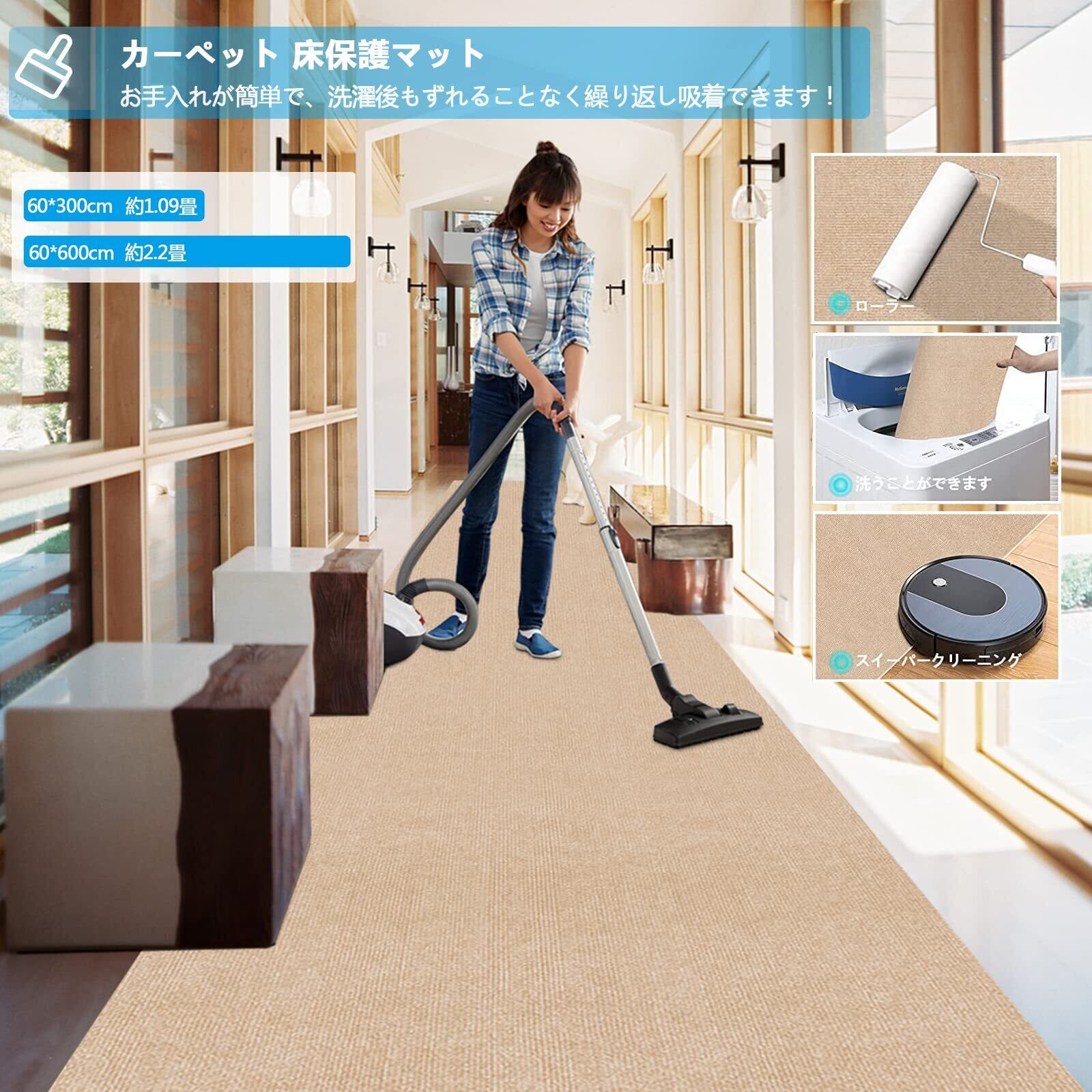 【Amazon 限定ブランド】廊下 カーペット 廊下敷き 60×600cm 厚さ4 mm Bolinker ズレない 洗える 撥水 おしゃれ 無地 カーペットタイプ 防音 ラグ 無地 ペット 置くだけで吸着マット ロールマット キッチンマット 玄関マット 階段マット(ベージュ)