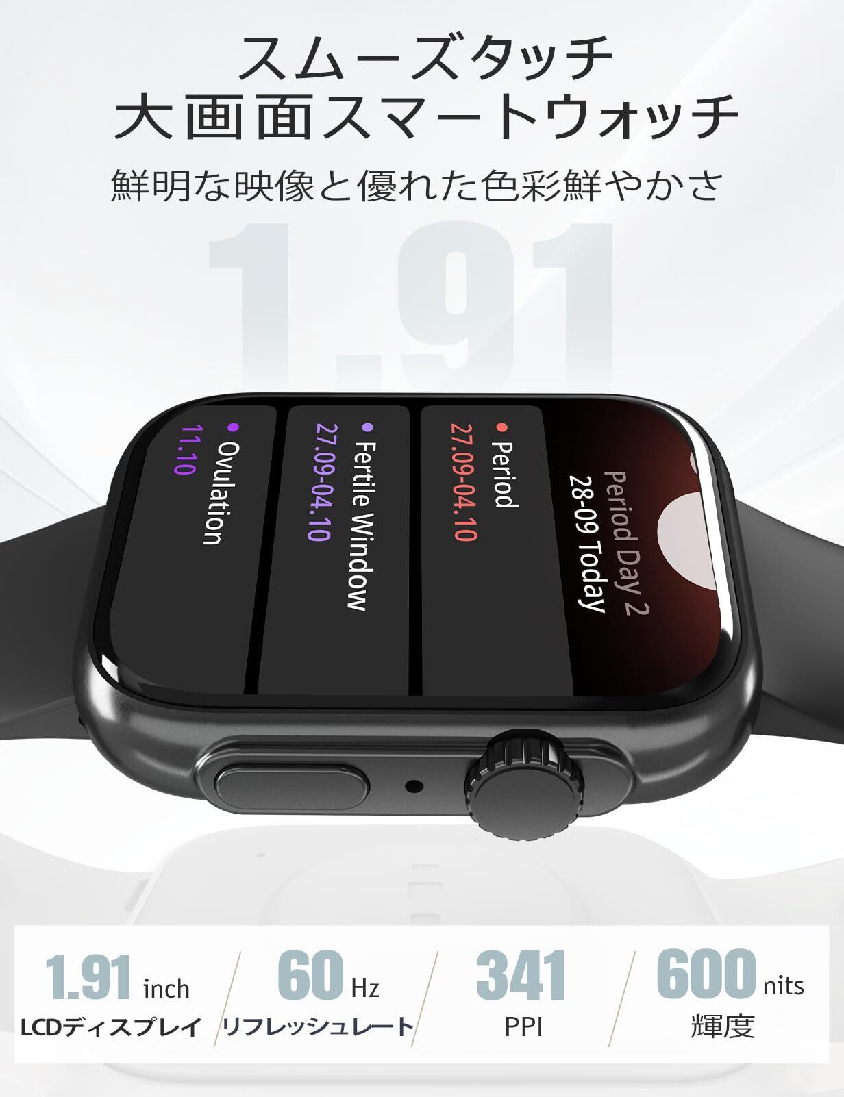 スマートウォッチ 2025年進化モデル【AI音声アシスタント・1.91インチ大画面】Bluetooth通話機能&LINE着信通知 iPhone対応&アンドロイド対応スマートウォッチ 100種類以上の運動モード 歩数計 活動量計 IP67生活防水 200種類の文字盤 アラーム 天気予報 音楽再生 超軽量 日本語対応 オシャレ スマート ウォッチ レディース メンズ プレゼントに最適 ブラック