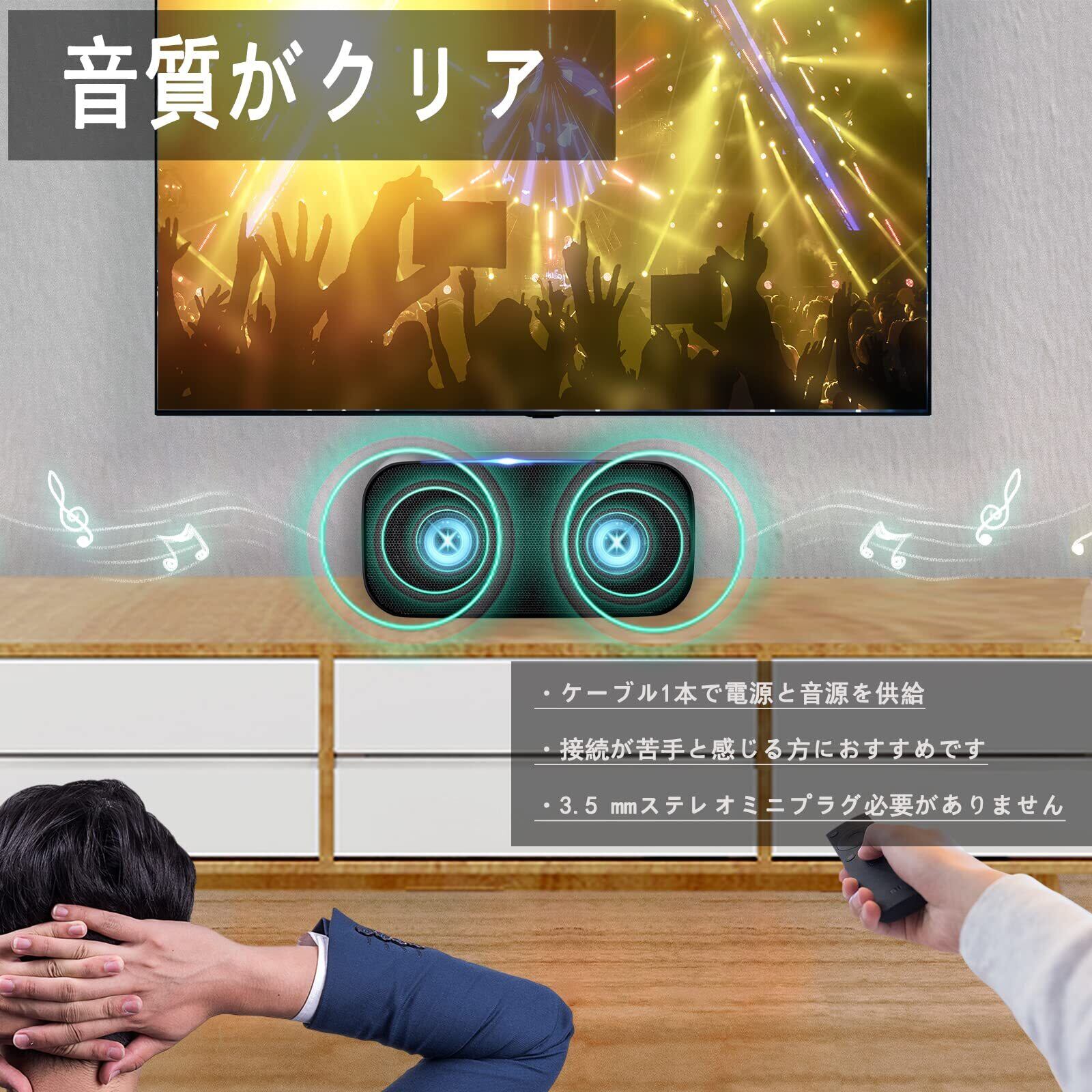 2.「高音質スピーカー」このpcスピーカーは実用最大出力3Wです。(一つ低音振膜、一つスピーカー)音声信号をデジタルで伝送するので、音質劣化の原因となるノイズの混入を防ぎます。入力した音源を独自にデジタル処理しているので、明瞭感が高いです。小さな音量でも自然に聞こえるように音響バランスを自動で調整してくれます。中・高音域の再生力も優れており、音潰れが少ないと言えます。スピーカー設計を採用することで、リアルな音を演出し、家の中にいても、臨場感溢れる音が体験できます。バフレス型は外の空気を取り込んで振動を強化するタイプで、重低音を綺麗に響かせてくれます。