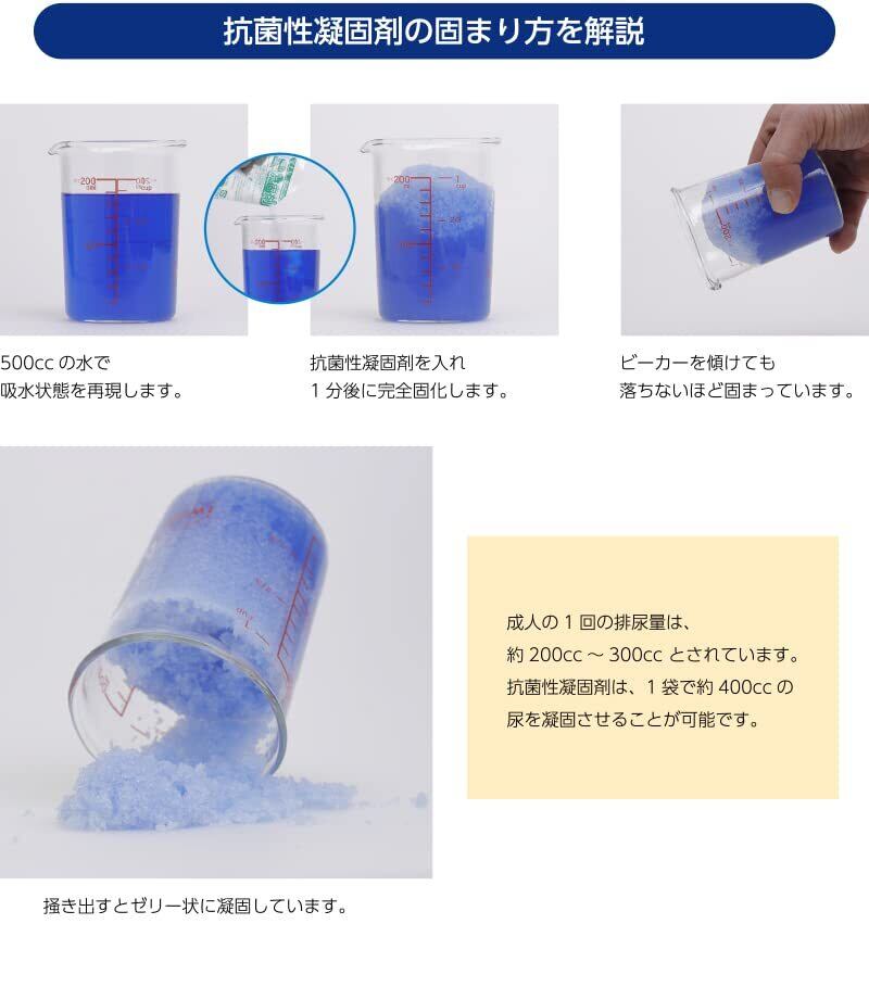 特別な防臭・抗菌処理が施された凝固剤が、嫌な臭いをしっかりと抑えます。安心してご使用いただけるよう、品質にも配慮しています。「※製品に関するご質問がございましたらお気軽にお問い合わせください。」