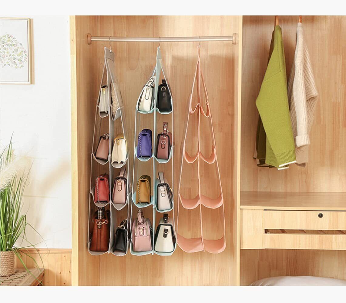 ドアまたは壁に取り付けられるポケット、8つ付き大容量のバック収納ハンガーです、ハンドバッグなど、散らかりやすいバッグをすっきり収納できる便利な収納ホルダーです!