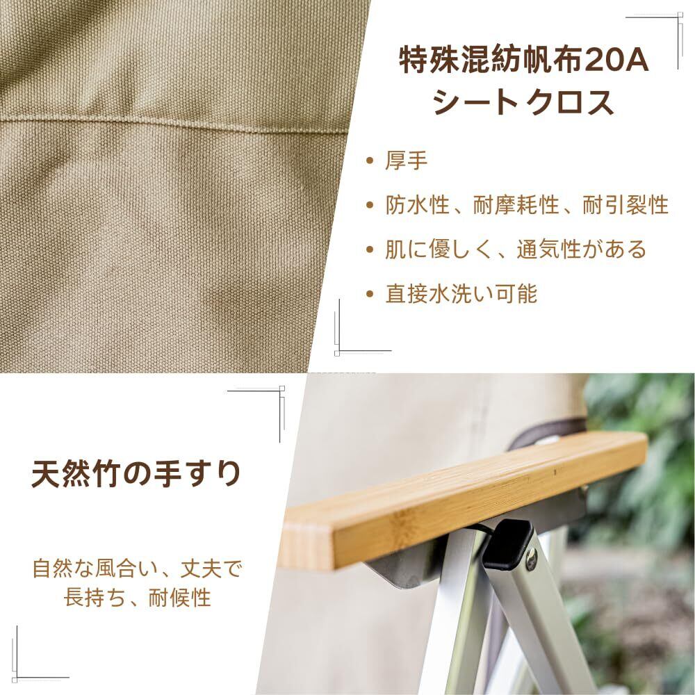 [素材]:フレームはアルミニウム合金製、軽量で高品質、シートはキャンバス製、通気性と防水性に優れ、手触りが柔らかく、丈夫で耐久性があります。 快適性と耐久性に優れた天然竹材のアームレスト。ステンレス製の金具は、錆びにくく、傷つきにくく、変形しにくいだけでなく、しっかりした構造になっています