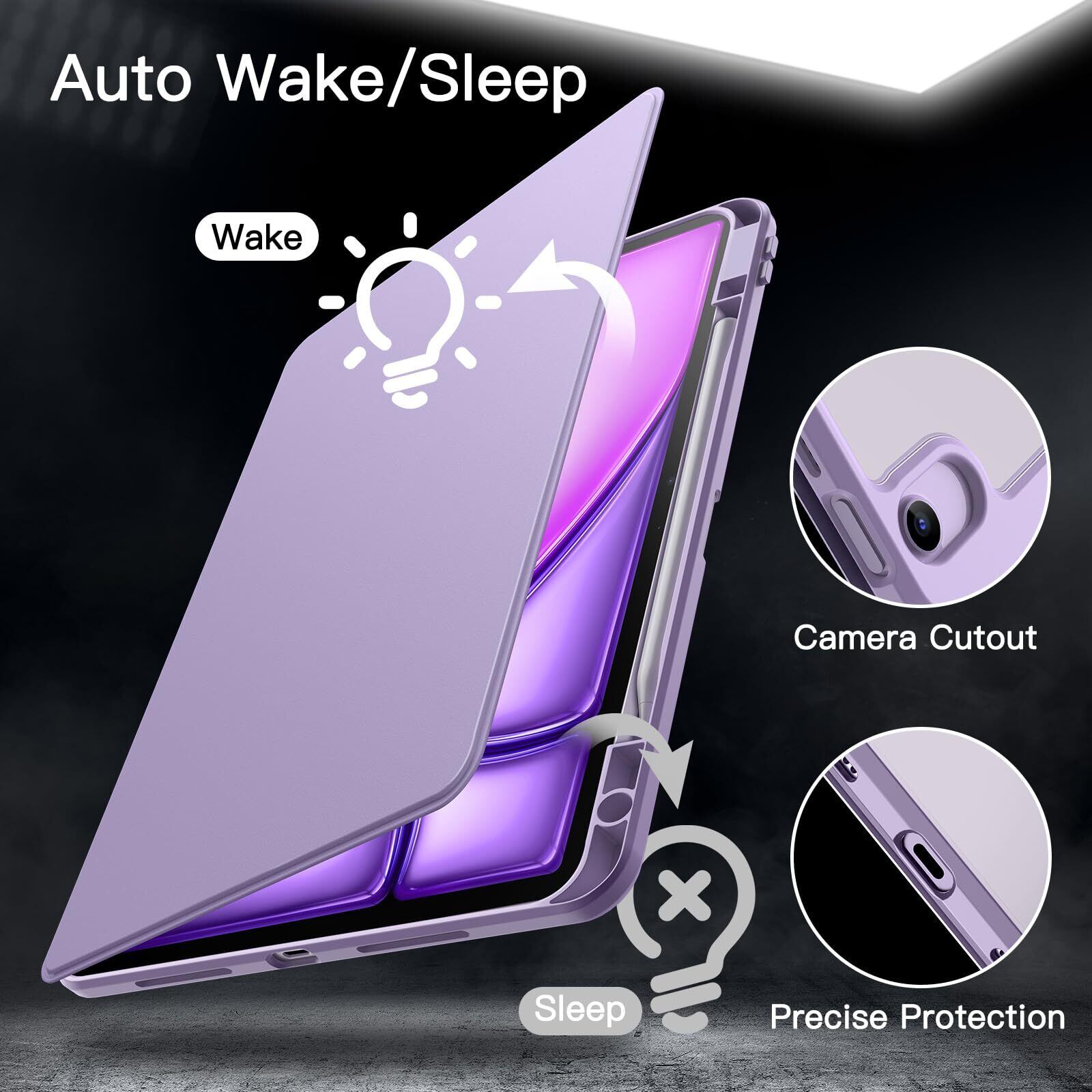 JETech 回転ケース iPad Air 13インチ M3/M2(2025/2024)用 Pencilホルダー付き 360°回転保護 スタンドカバー クリアバック オートウェイク/スリープ (パープル)