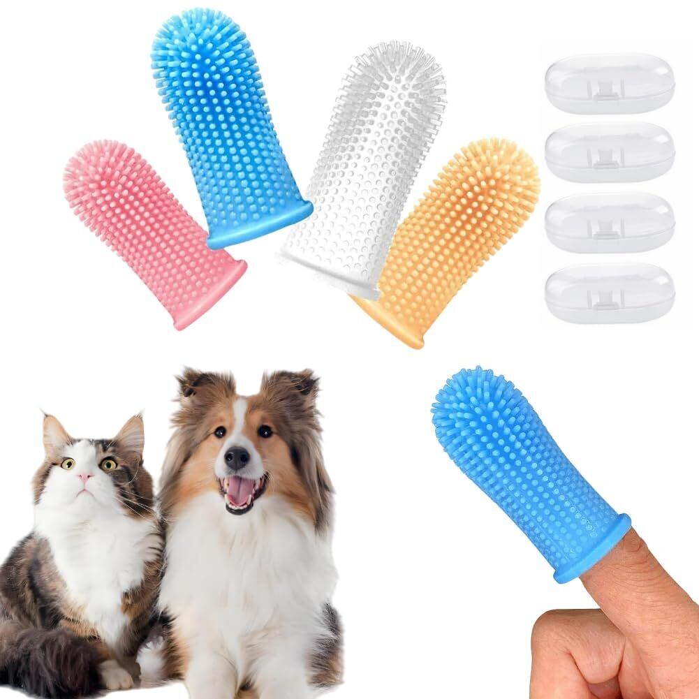 犬 ペット 歯ブラシ 指歯ブラシ フィンガー歯ブラシ 指サック 犬口ケア 歯茎 シリコン製 猫犬通用 猫 小型犬 中型犬 大型犬 ペット用品 4個セット (ブルー+オレンジ+ピンク+透明) | yankees