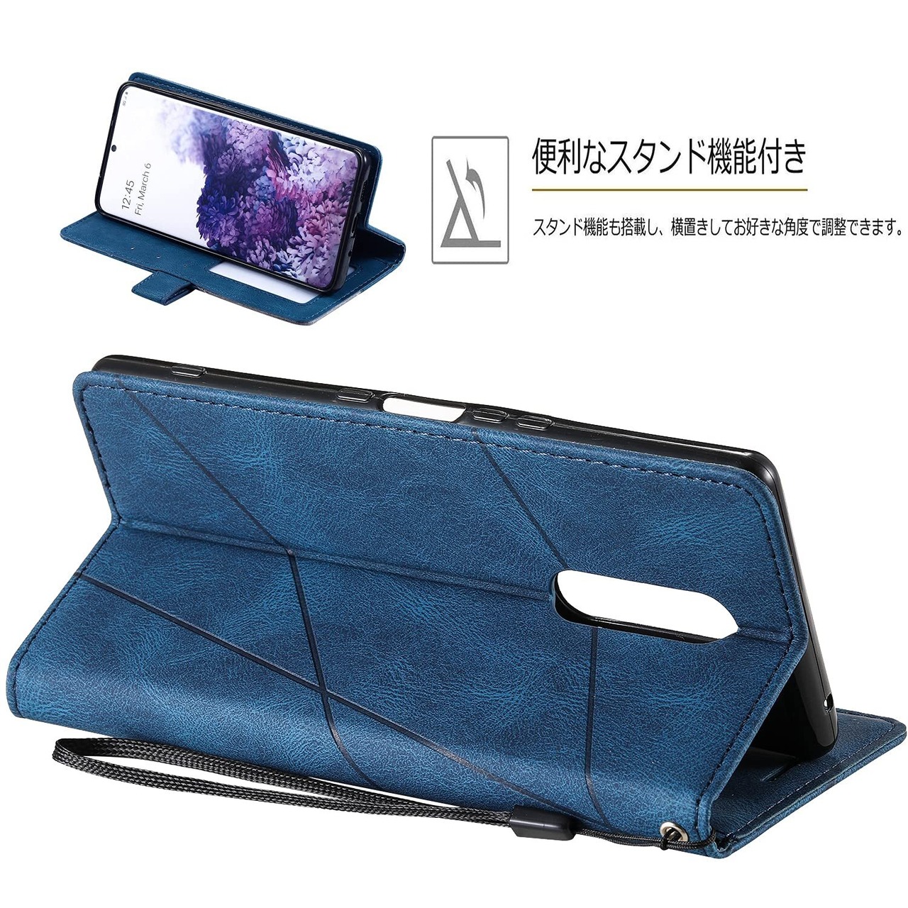 UnivoColors Sony Xperia 1(SO-03L/SOV40)手帳型ケース カード収納 スタンド機能 サイドマグネット TPUケース 軽量 ストラップ付き QI充電対応 横置き機能 防指紋 レンズ保護 全面保護 (ブルー)