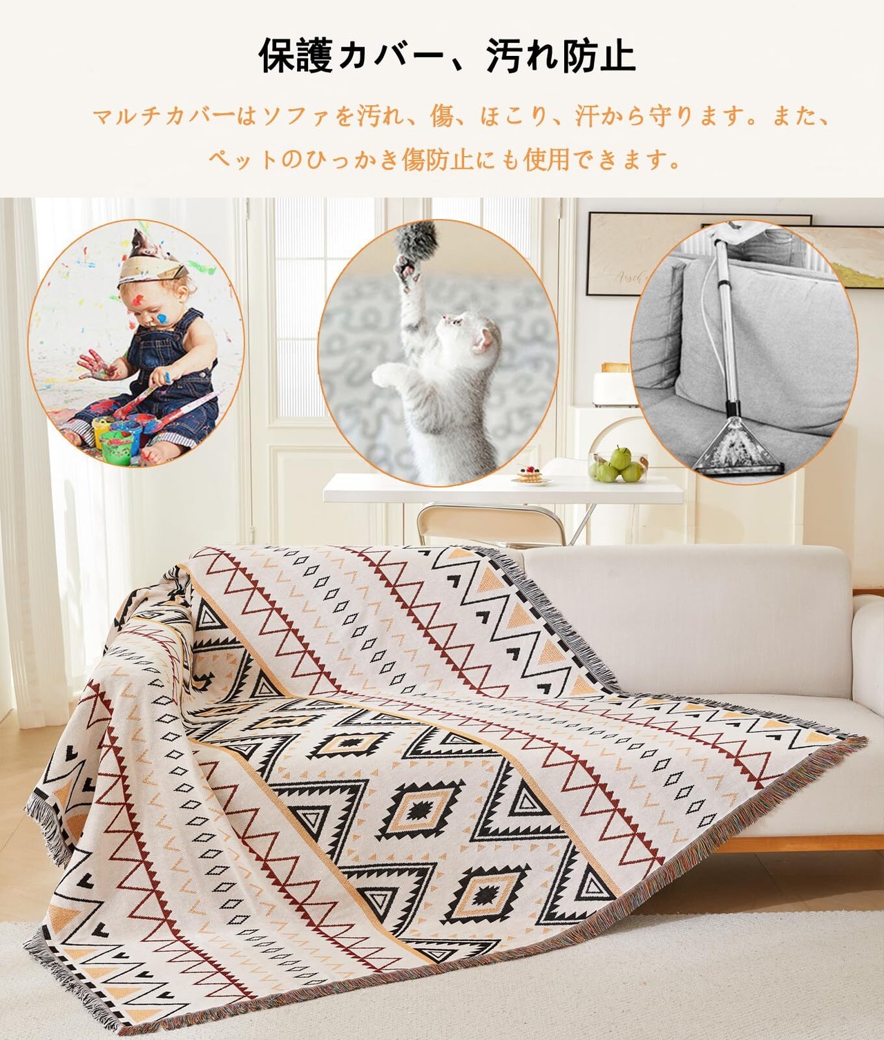 高品質の綿素材を使用しており、汚れに強く、日常の使用でも安心です。大切なソファをほこりや汚れから守り、いつでも清潔に保つことができます。さらに、四季を通じて使用できるので、いつでも気軽に取り入れられます。