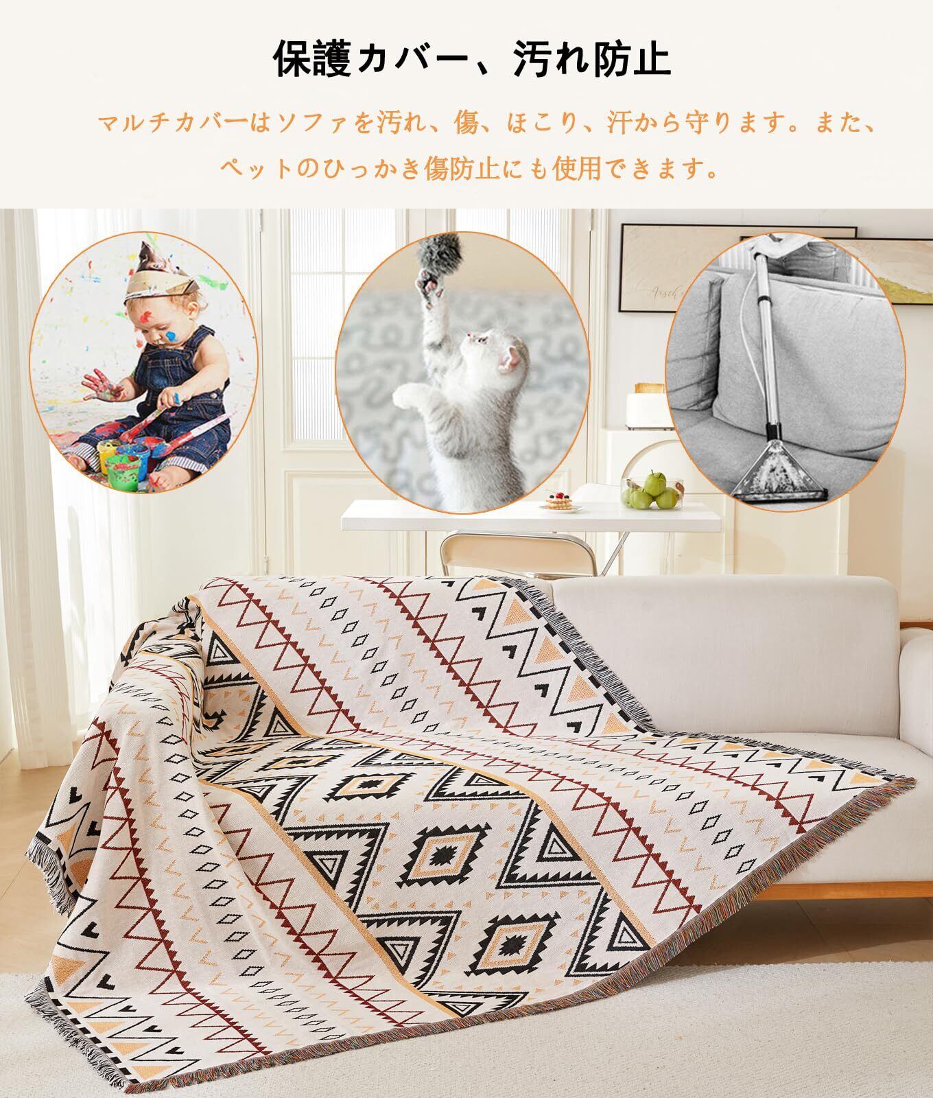 マルチカバー 北欧風 ソファカバー 長方形 ブランケットフリンジ付き 綿 1 2 3人掛け カウチ ベッドカバー カーペット テーブルクロス リバーシブル 汚れ防止 犬猫傷 防止 防塵 四季通用 大判 洗える