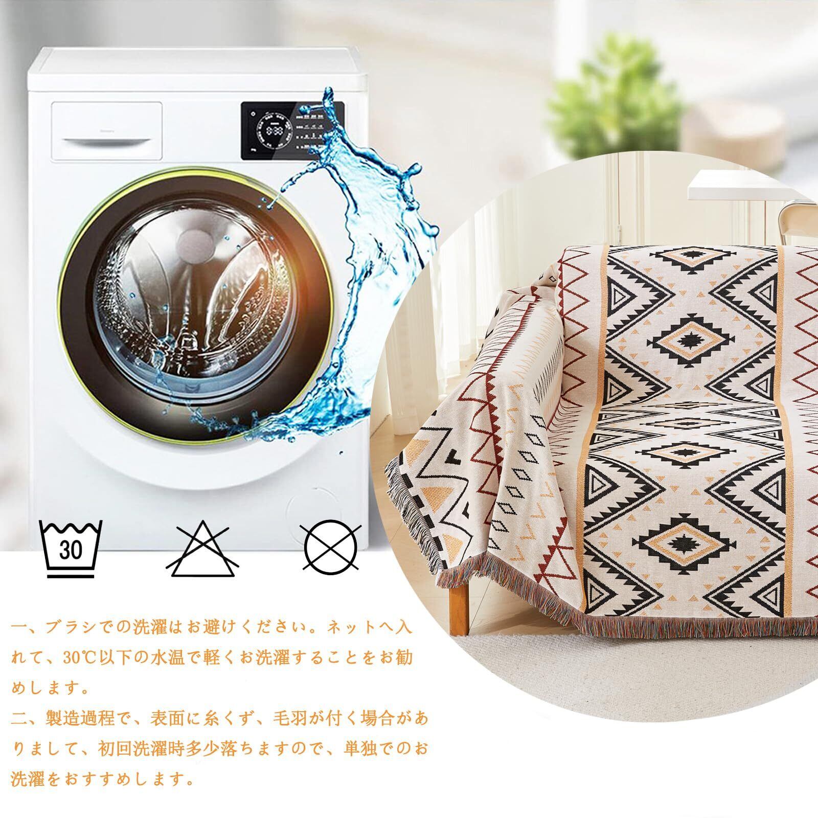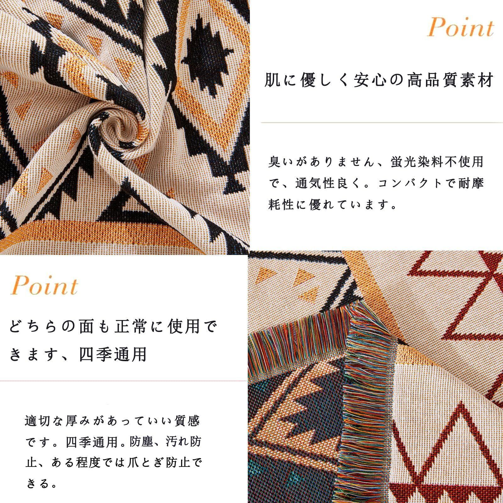 シンプルなデザイン フリンジ付き: 幅広い年齢グループに人気の北欧風、高級感UP。お部屋内のインタリアと合いやすく、使うと室内の雰囲気も明るくなりますぞ, 両面が違っていますが, どちらの面も正常に利用できます。飽きたときはベッドにかけたり多目的でつかえます。