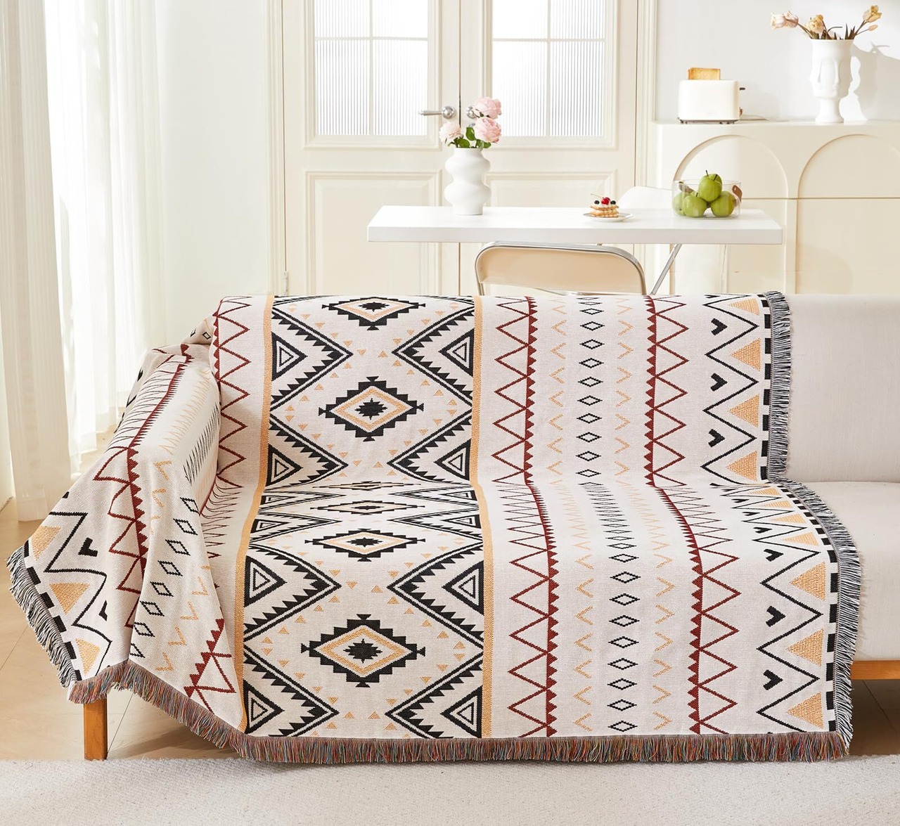 美しいブランケットフリンジ付きのソファカバーは、どんなインテリアにもぴったり合います。シンプルでありながら洗練された雰囲気を演出し、居心地の良い空間を作り出します。「※製品に関するご質問がございましたらお気軽にお問い合わせください。」