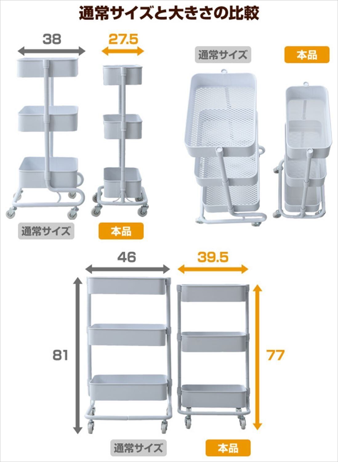 幅39.5cm、奥行27.5cmとコンパクトなサイズで、狭いキッチンやリビングでもしっかり収まります。狭い場所でも使いやすい設計で、収納や移動が楽になります。「※製品に関するご質問がございましたらお気軽にお問い合わせください。」
