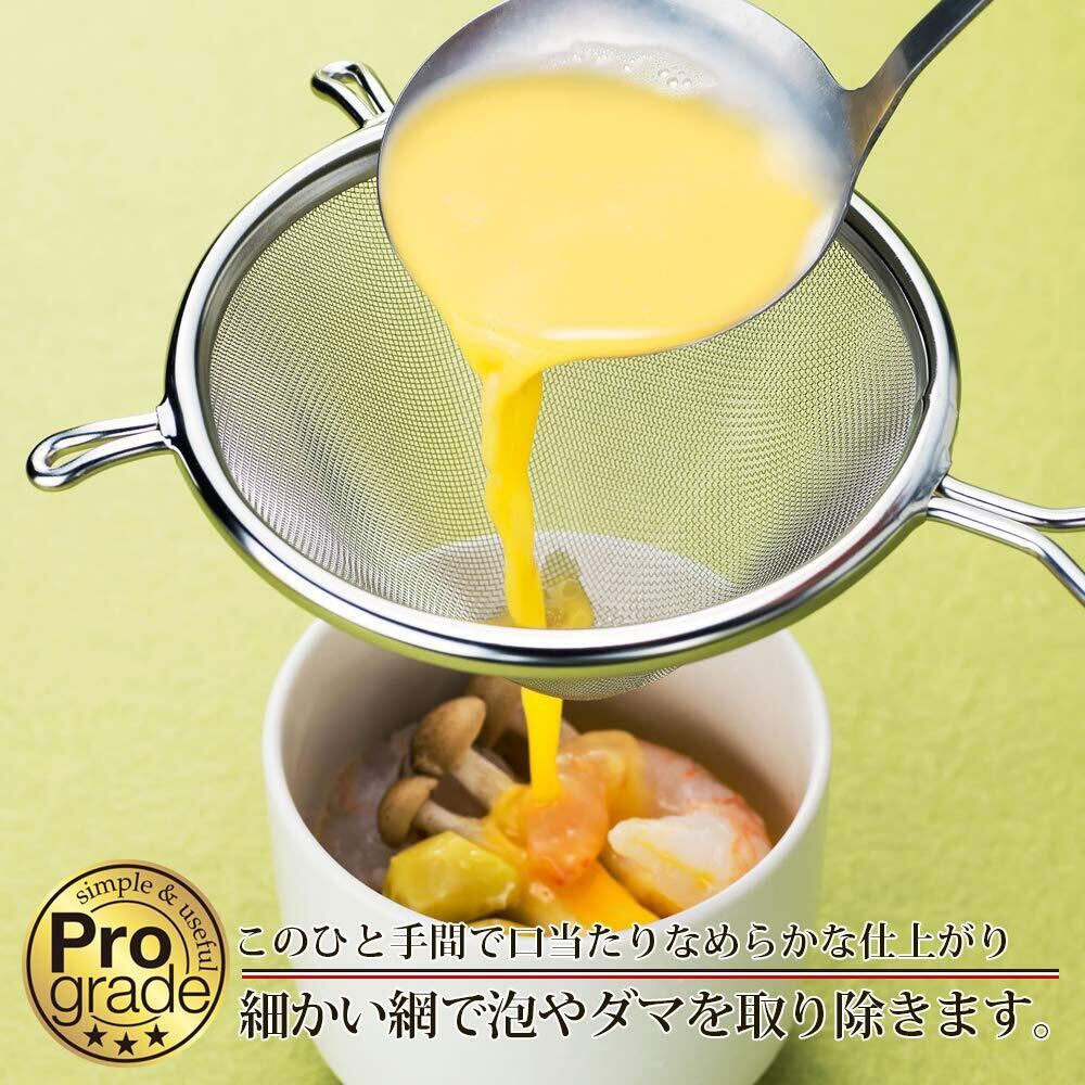 丈夫なステンレス製のストレーナー。泡やダマを漉すことにより、本格的で口当たりの良い食感のお料理ができます。