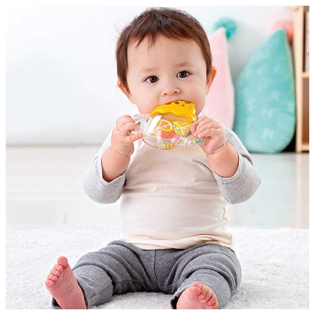 ホイッスルを吹くと、元気な音が鳴ります。この音遊びは赤ちゃんの聴覚を刺激し、音に対する認識を育てる手助けをします。楽しみながら感覚を発達させるのに最適なおもちゃです。