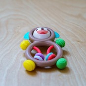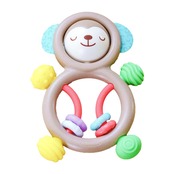 可愛いおさるのラトル&歯がため。仕掛けがいっぱいで、握ったり、回したり、様々な触感が楽しめます。