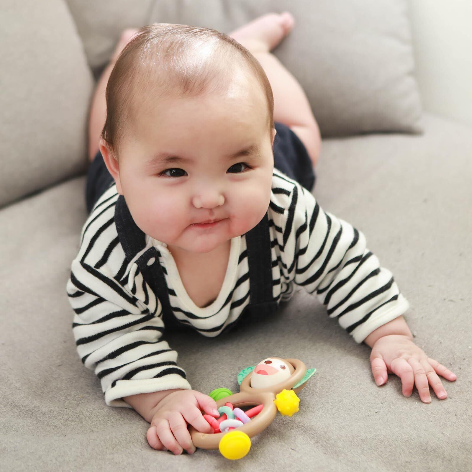 ラトルを振ると、心地よい音が響きます。音を聞くことで赤ちゃんの聴覚を刺激し、遊ぶことで集中力やリズム感を養うのに役立ちます。楽しい音は赤ちゃんの興味を引き続ける魅力的な要素です。