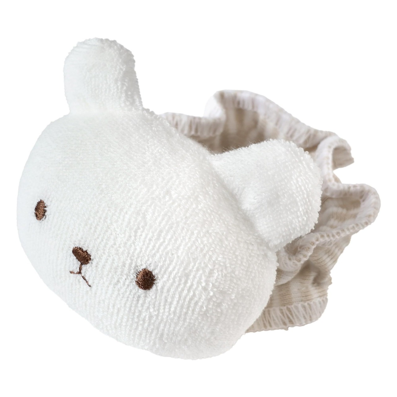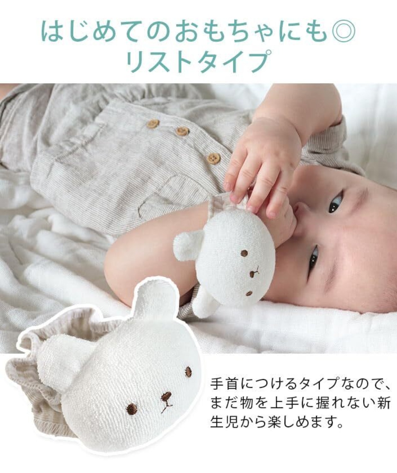当ラトルは、赤ちゃんが安心して触れられるやわらかいパイル素材で作られています。敏感な肌に優しく、赤ちゃんが自分で握って遊ぶ時にも安心です!「※製品に関するご質問がございましたらお気軽にお問い合わせください。」