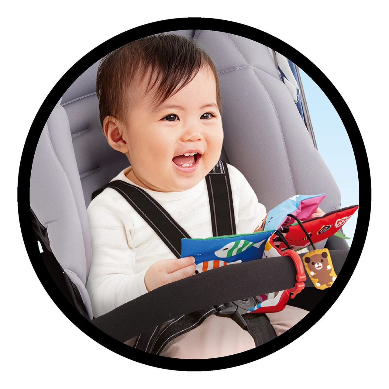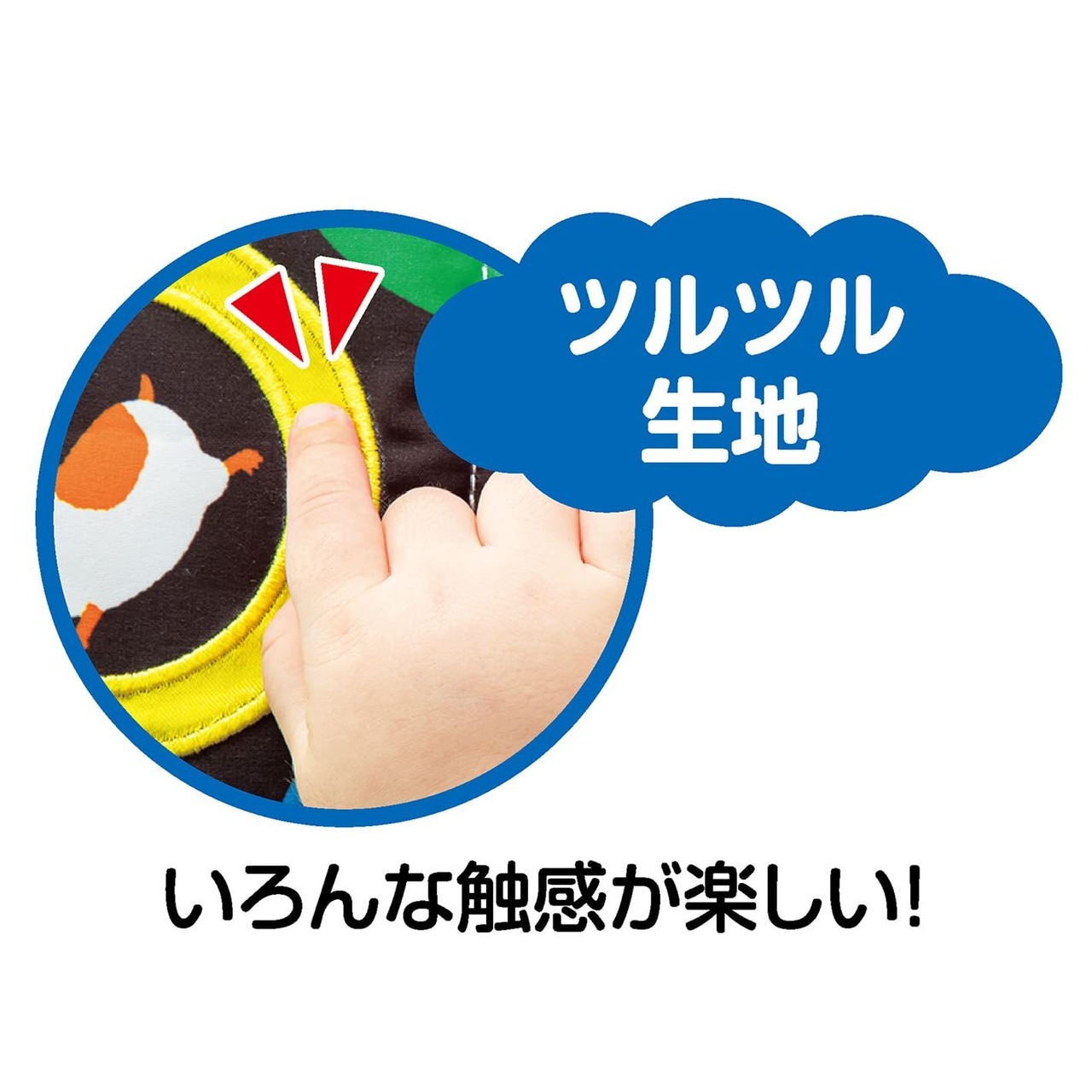 多彩な質感やさまざまな仕掛けがふんだんに盛り込まれています。触ったり、めくったりすることで、手先の運動能力が養われ、認識力も向上します。お外での使用にもぴったりなサイズ感です。