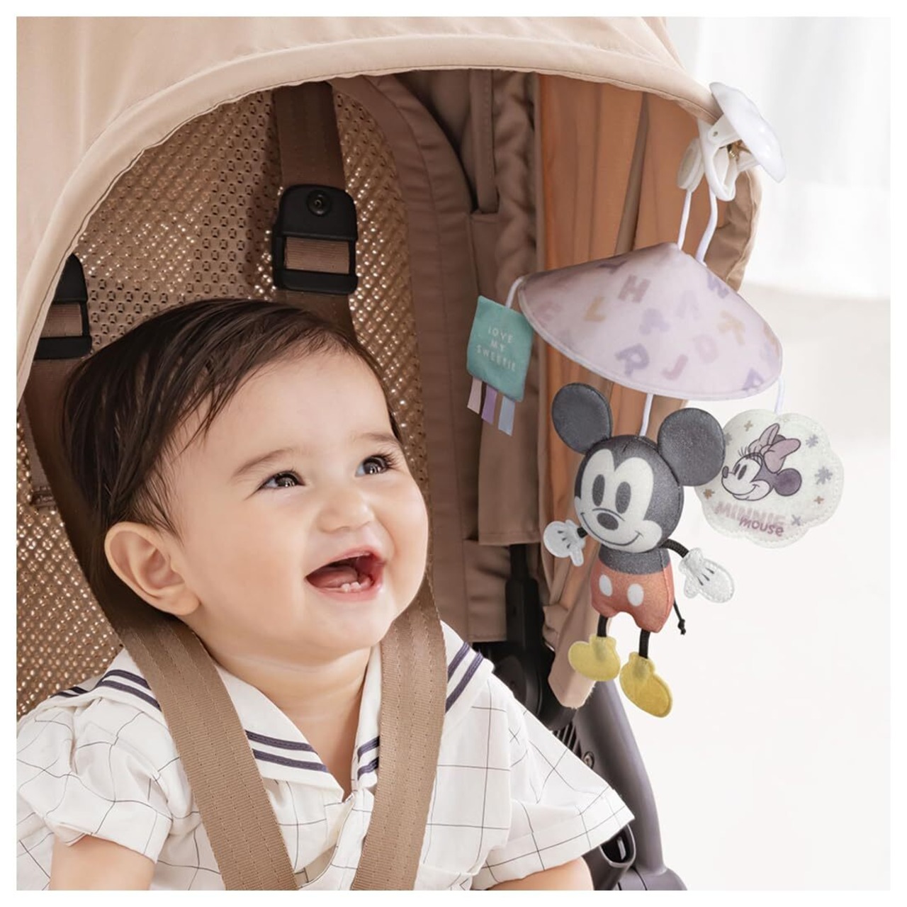 「ディズニー ふんわりミニメリー くるりんパラソル ミッキー&ミニー」で、赤ちゃんのお出かけを一層楽しく彩りましょう!このパラソルは、愛らしいミッキーとミニーのデザインが特徴で、赤ちゃんの好奇心を刺激するために考えられています。