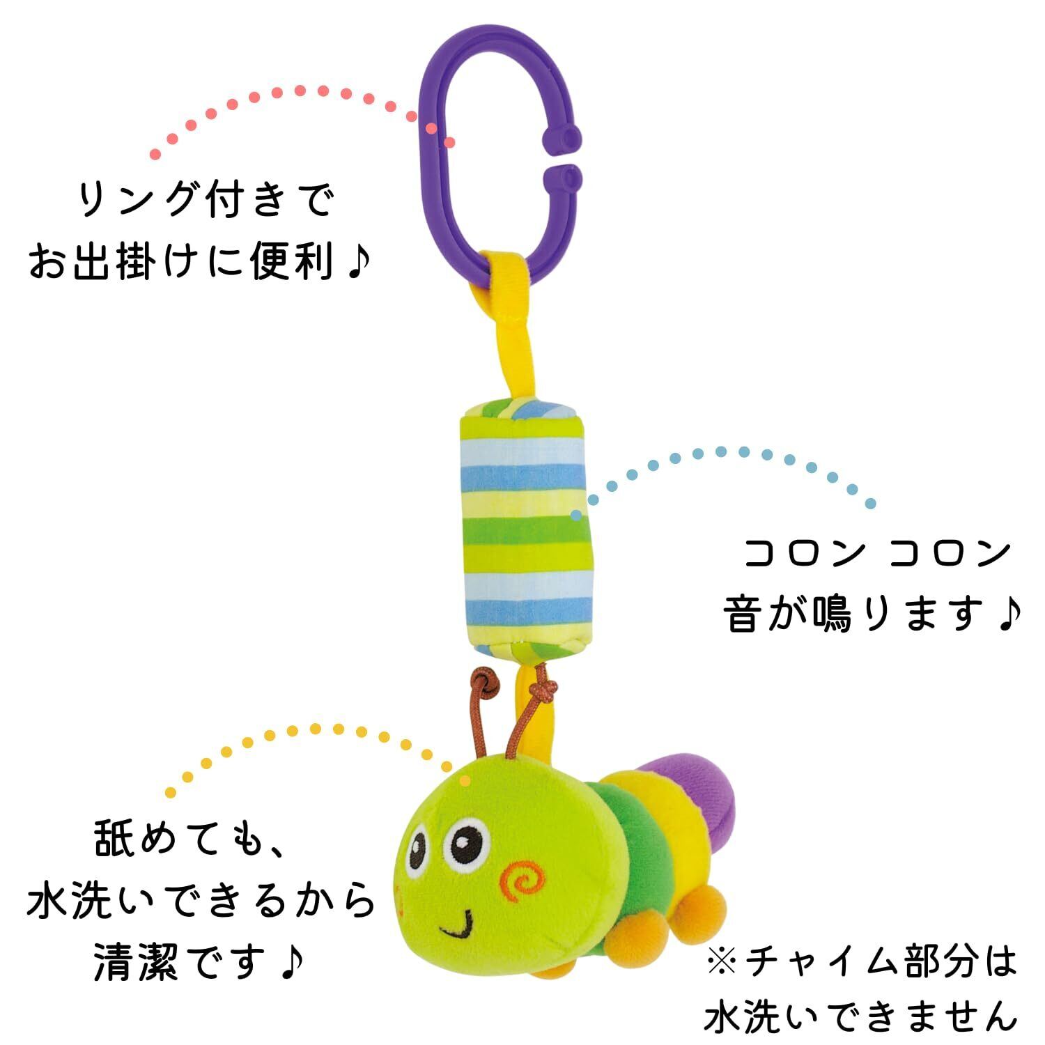 【やわらか素材のおでかけチャイム】赤ちゃんもにっこりするやわらかい素材のいもむしの人形。大きめサイズで掴みやすい! たくさんぎゅ~と握ってね!