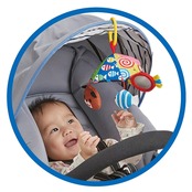 ベビーカーの振動や風により、わんわんやお魚たちがやさしく揺れます。