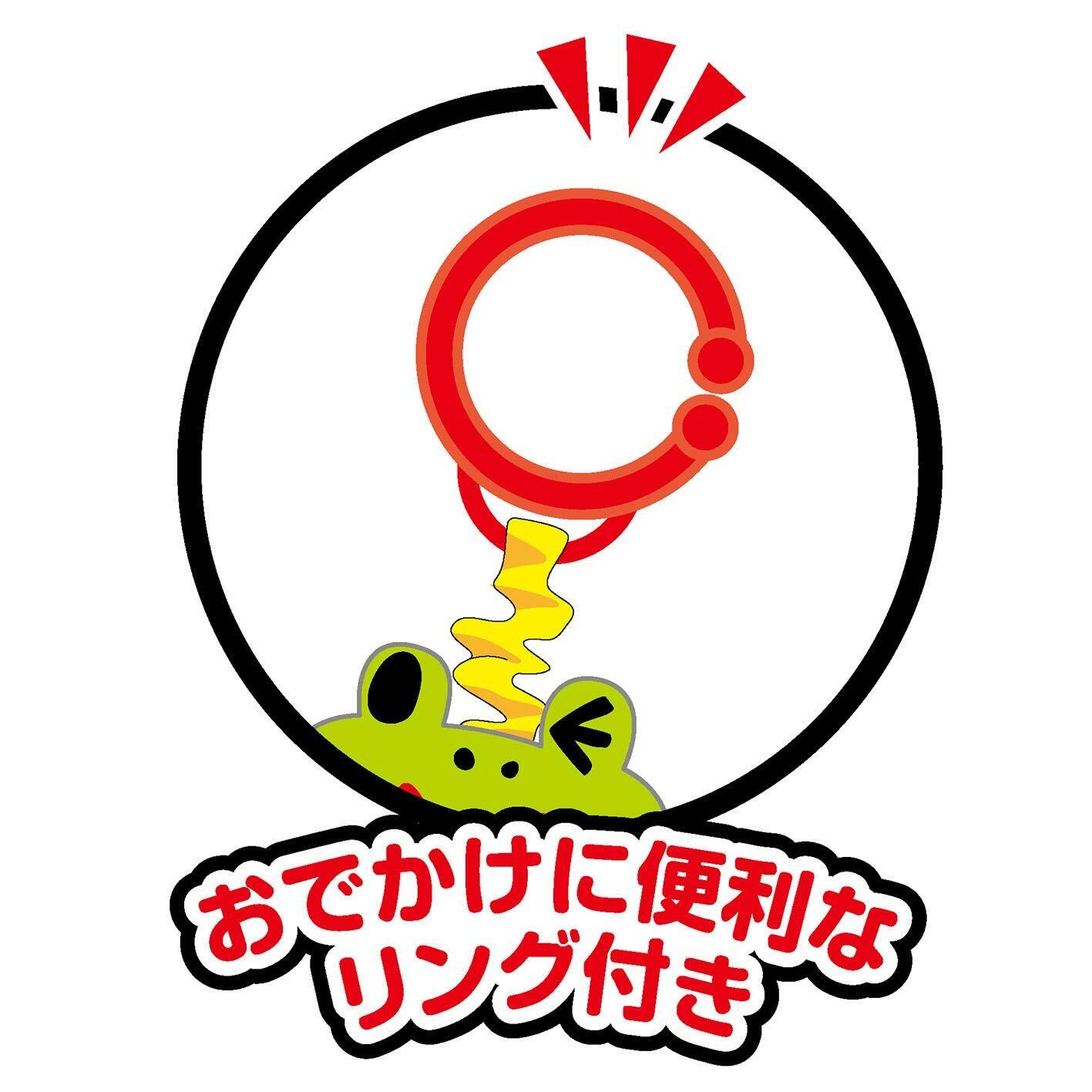 ひっぱるとぶるぶる動く、赤ちゃんとママのおでかけをサポートしてくれるカエルのマスコットです。