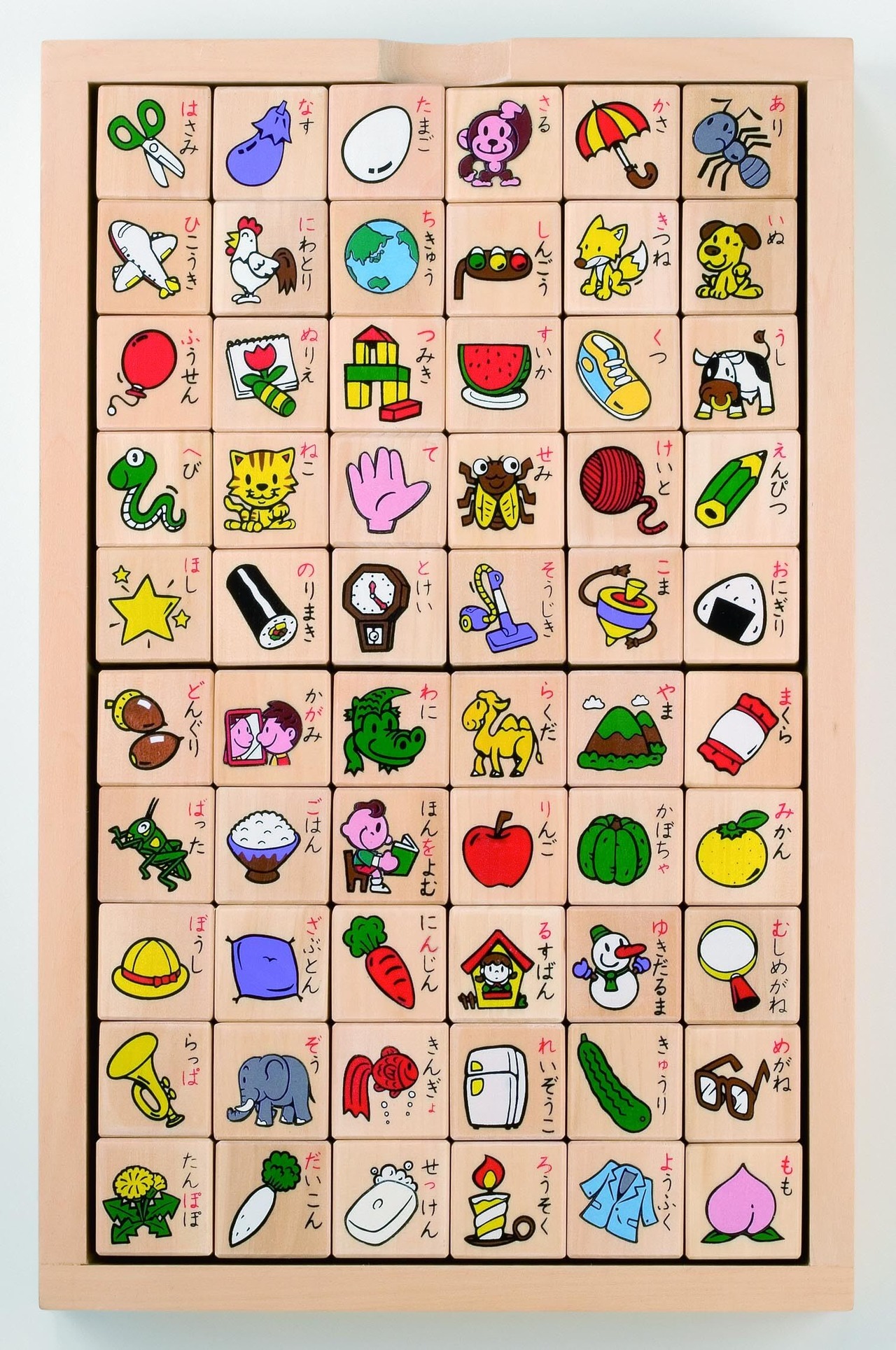 立方体のつみきの5面にひらがなが、残りの1面にイラストとことばが印刷されているひらがなつみきです。お子さまのことばの世界を大きく広げます。