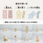 【子どもの成長に寄り添う】 年齢や思考の成長に合わせて、遊び方もステップアップ! はじめはシンプルな見立て遊びからスタートし、徐々にバランス遊びや構造物作りへ。長く飽きずに楽しめるので、地頭や論理的思考力のトレーニングにも最適です。