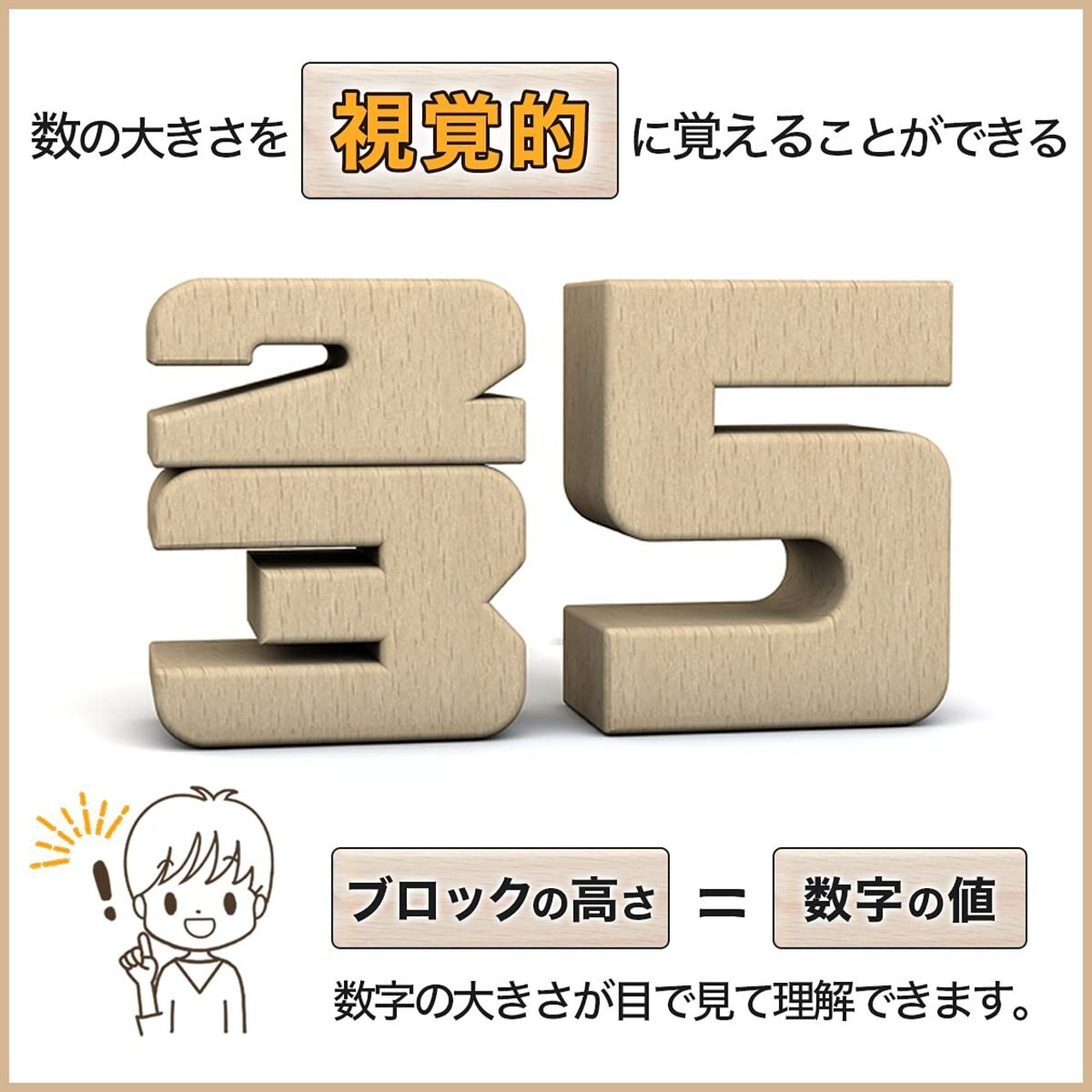 数学の概念が目で見て分かる!ブロックの高さがその数字の値に等しいので、数字の大きさを目で見て理解できます。
