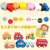 CORPER TOYS 木製 紐通し おもちゃ ひもとおし セット 乗り物交通定番シリーズ 指先訓練 ビーズ遊び 男の子 女の子 おもちゃ カラフル クリスマス 八歳以上