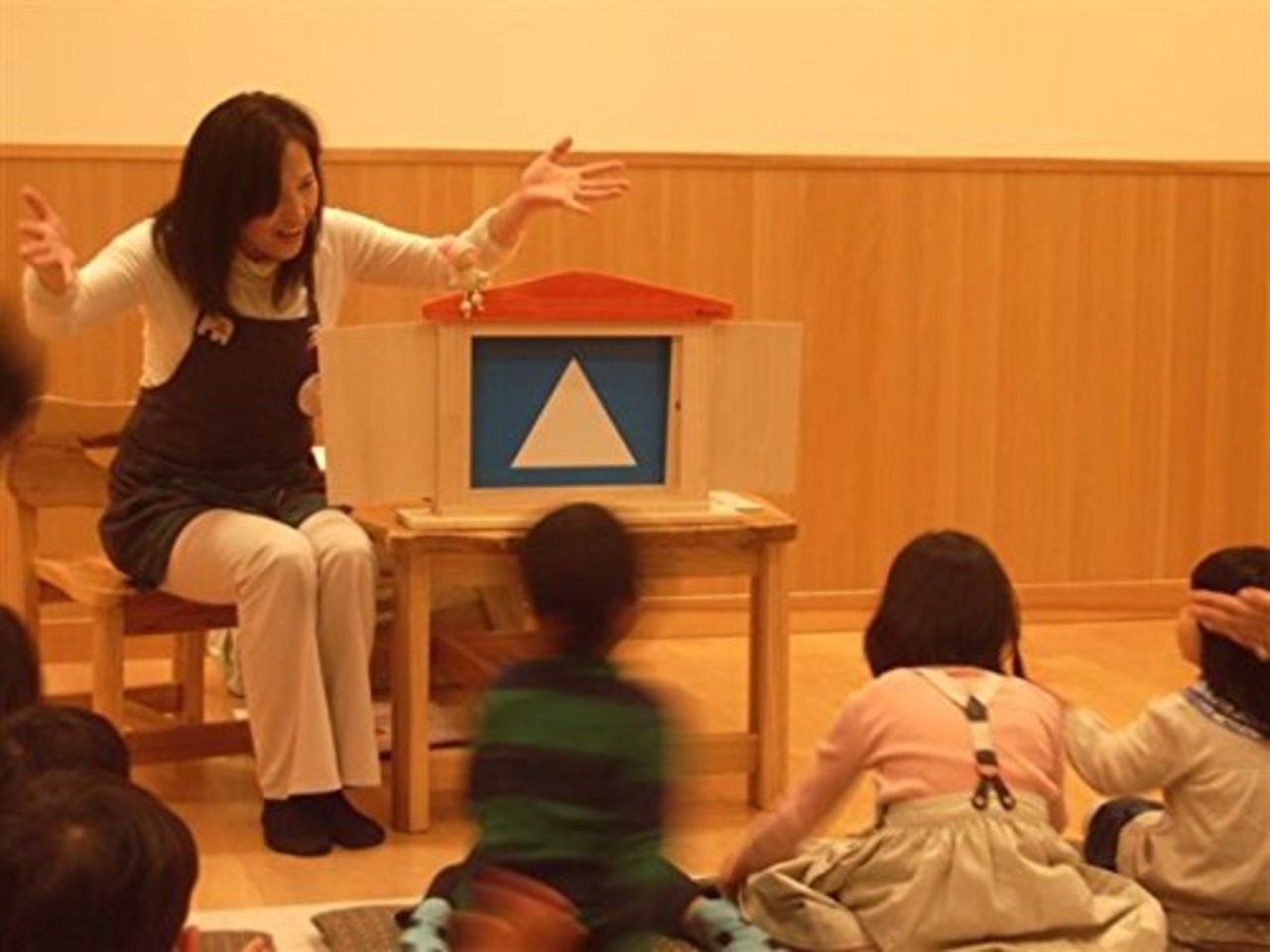 日本国内生産 とっても可愛く実用的な紙芝居フレーム「お話しの館」《手づくり木のおもちゃHUG HUG(はぐはぐ)》
