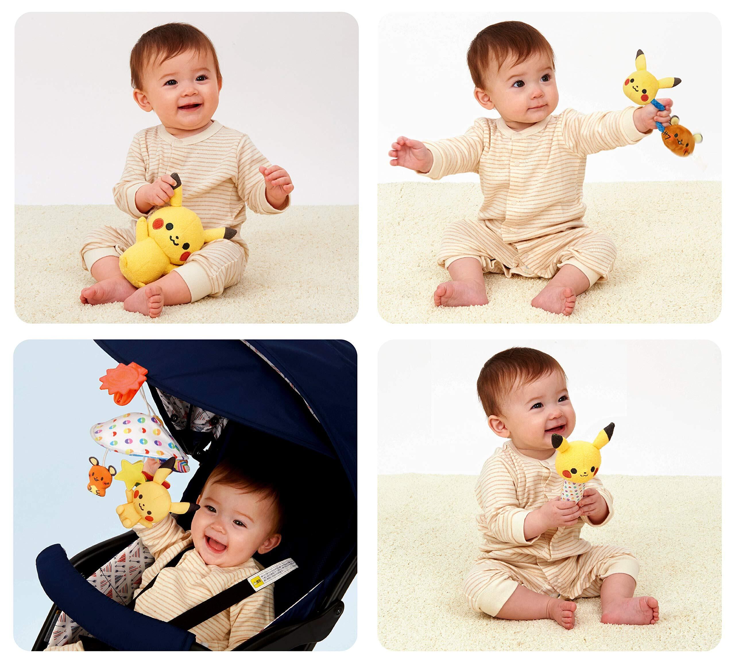もこもこぬいぐるみ、なかよしラトル、にぎってっプップ、おでかけベビーカーメリーのピカチュウマスコットは手洗い可能で清潔にあそんでいただけます。(メリーはピカチュウマスコット以外は洗えません)