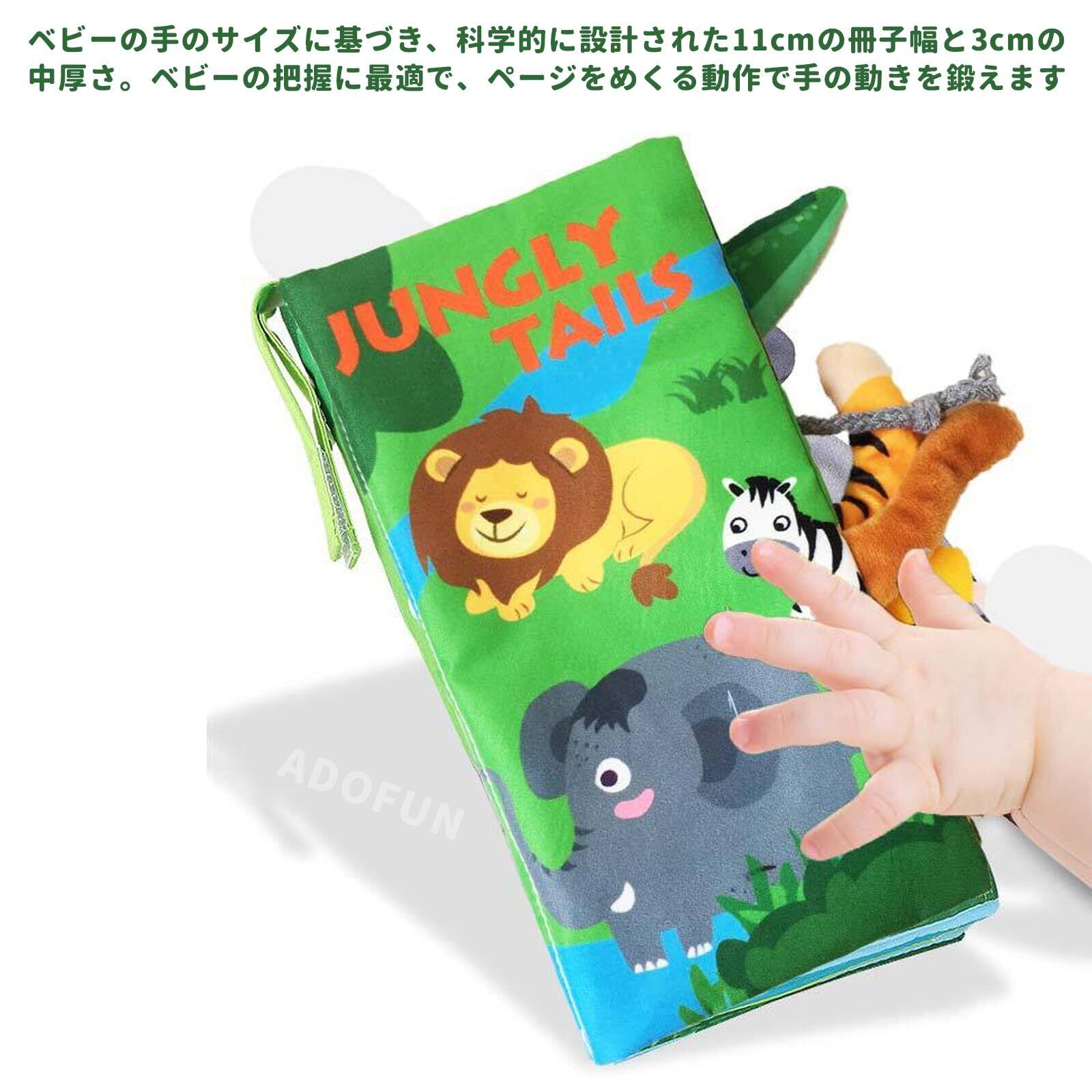 ADOFUN 赤ちゃん布絵本 布のおもちゃ 布絵本 洗える 幼児 ピーピーの音が出てくる 【ジャングルの動物・3Dアクティビティブック】 指遊び 知育玩具 柔らかい 歯がため 0歳から 幼稚園 子供 出産祝い