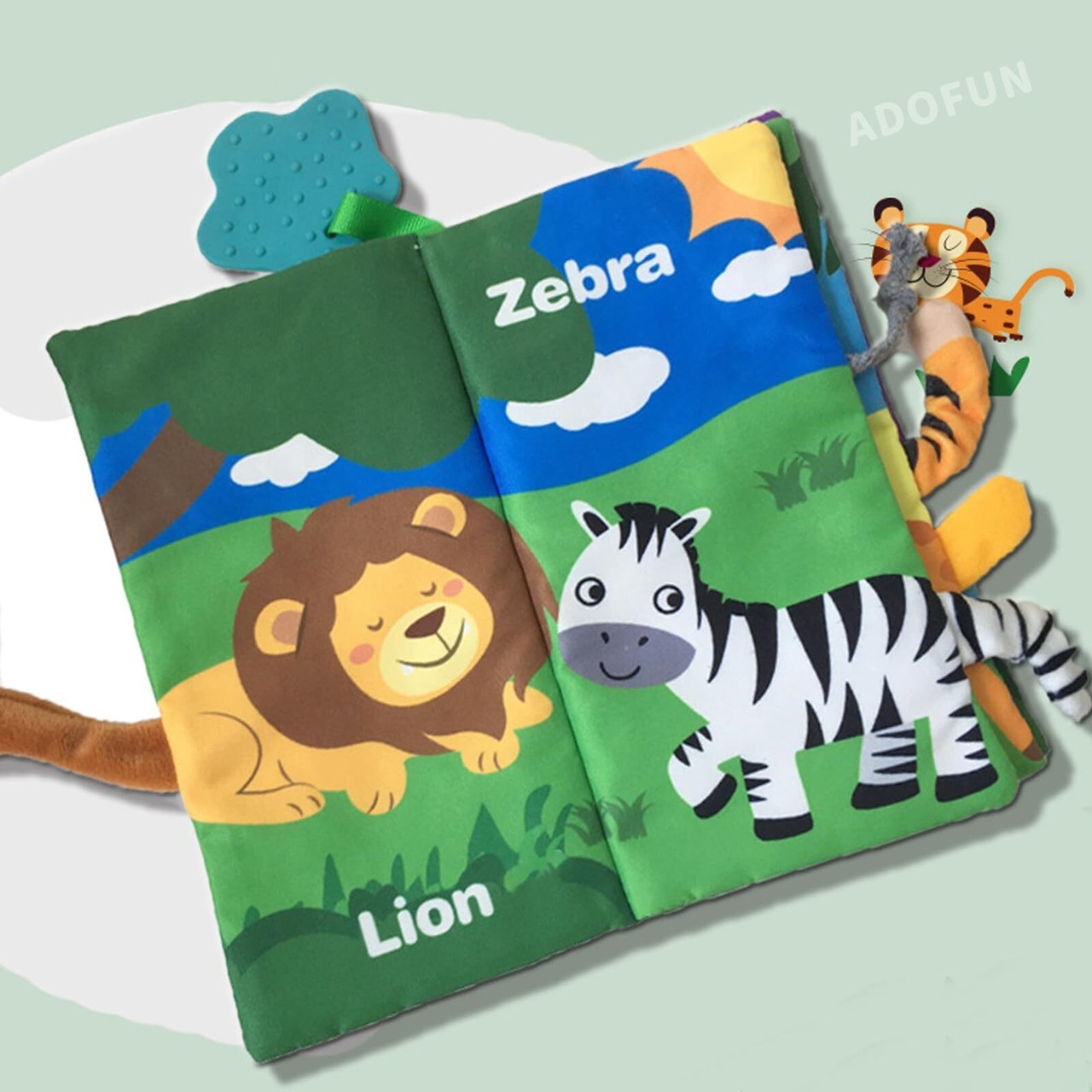 ADOFUN 赤ちゃん布絵本 布のおもちゃ 布絵本 洗える 幼児 ピーピーの音が出てくる 【ジャングルの動物・3Dアクティビティブック】 指遊び 知育玩具 柔らかい 歯がため 0歳から 幼稚園 子供 出産祝い | yankees
