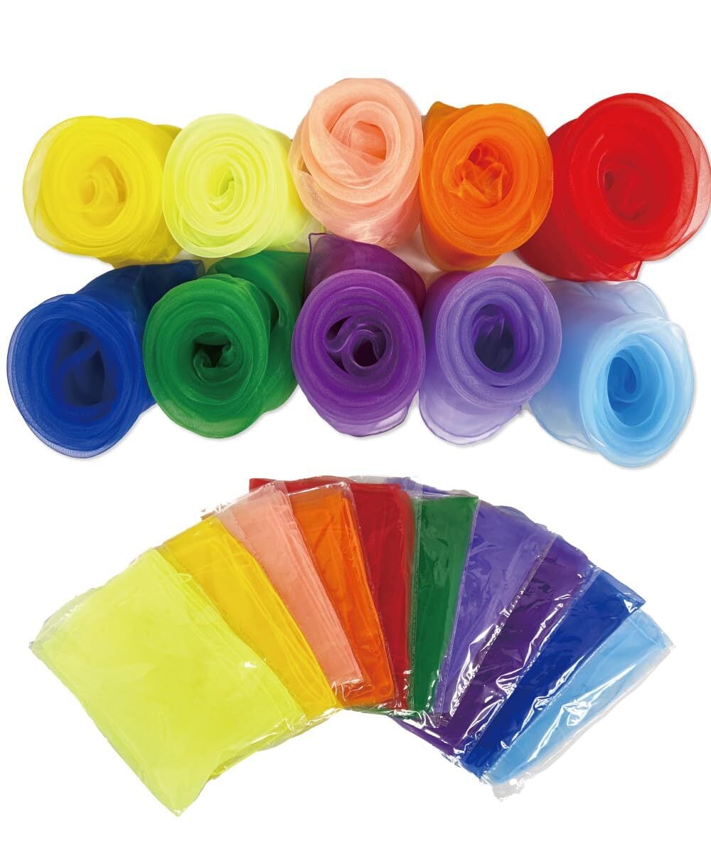 ひらひらリトミック シフォンスカーフ 60cm 10色セット ダンス オーガンジー 子供 カラフル(10色セット)